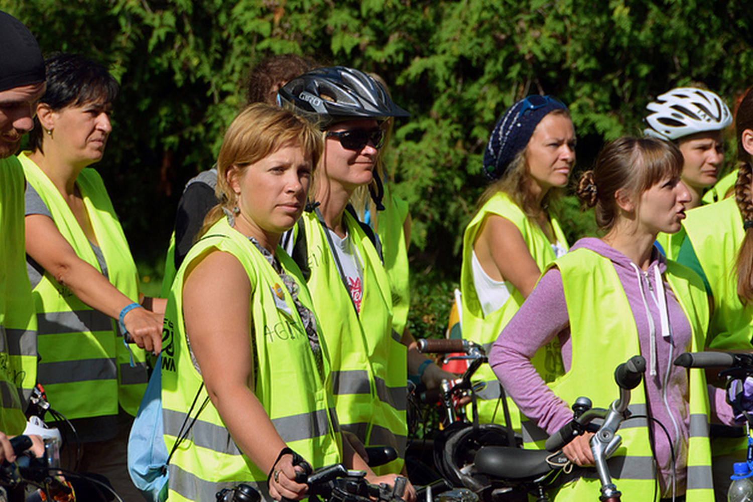 Une centaine de bibliothécaires et de passionnés des bibliothèques ont participé au « Tour des bibliothèques » (« Cycling for Libraries ») dans les pays baltes en 2012. Cette photo a été prise au départ du Tour à Tartu, en Estonie.