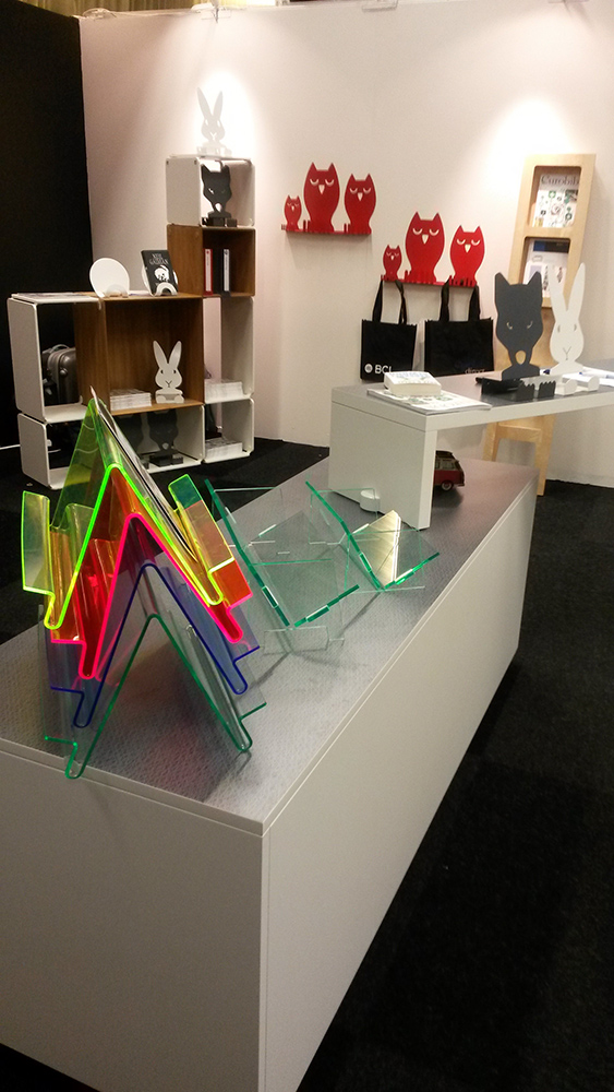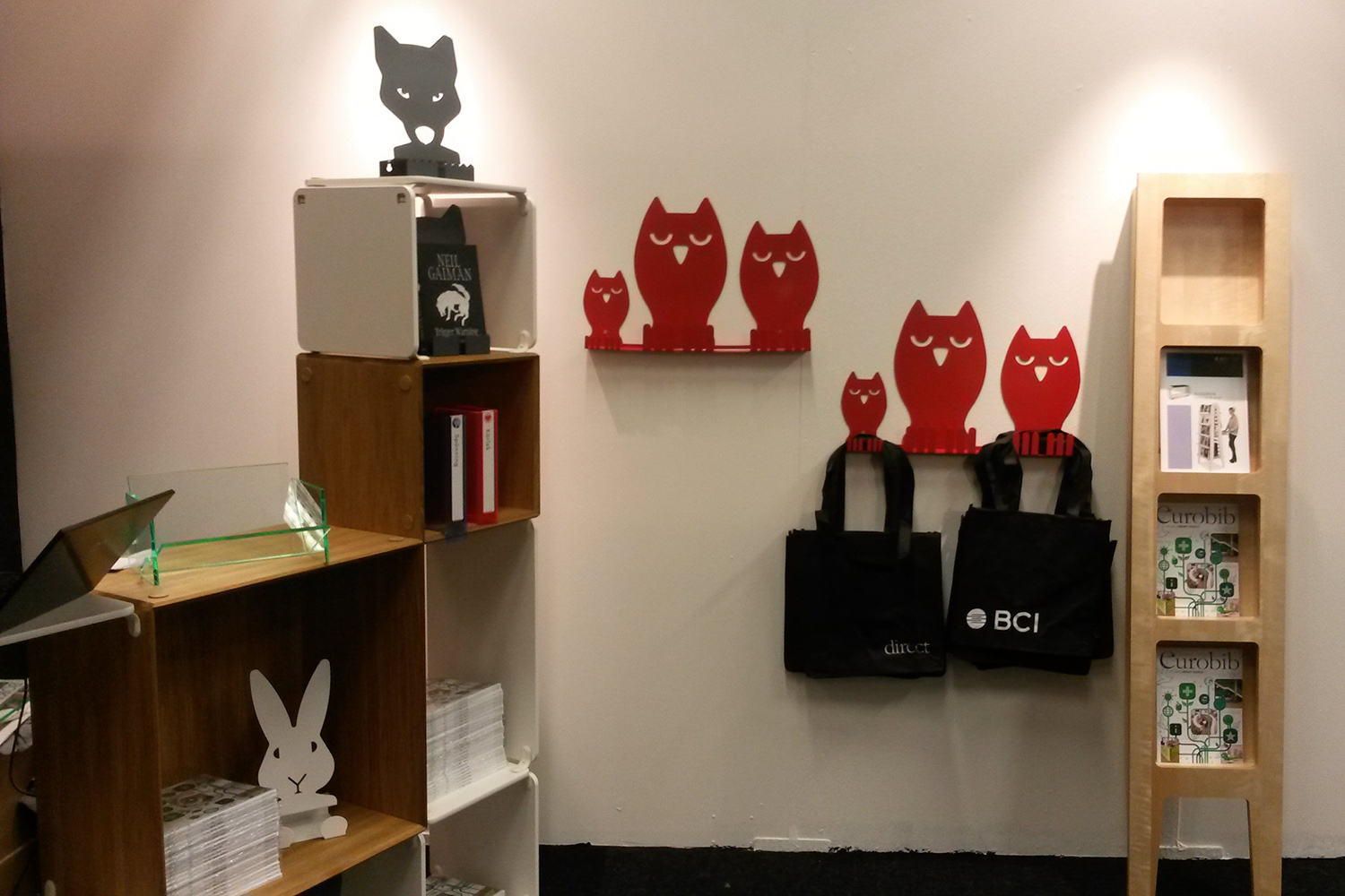 Notre stand de l’édition 2015 de la Foire du Livre a mis la nature à l’honneur : arbres, loups, lapins et autres oiseaux joyeux côtoyaient en effet quelques-unes de nos dernières nouveautés comme les tours de présentation en contreplaqué de bouleau, disponibles en version autonome ou à placer contre un mur. Ces dernières peuvent s’utiliser pour exposer différents éléments ou présenter des livres de face.