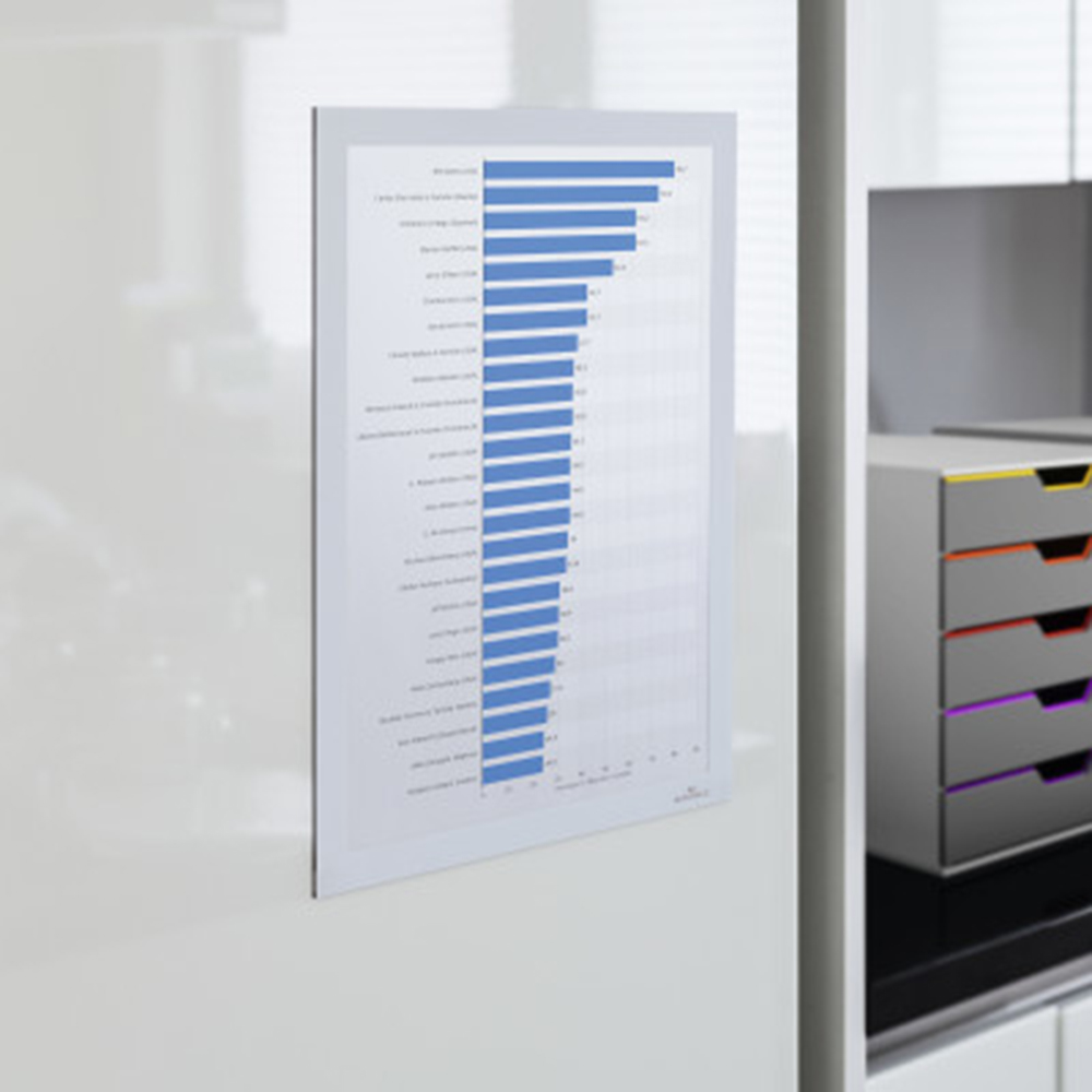 Les cadres ont le même aspect de part et d’autre s’ils sont posés sur une surface vitrée et peuvent être utilisés sur une ou deux faces en format portrait ou paysage.