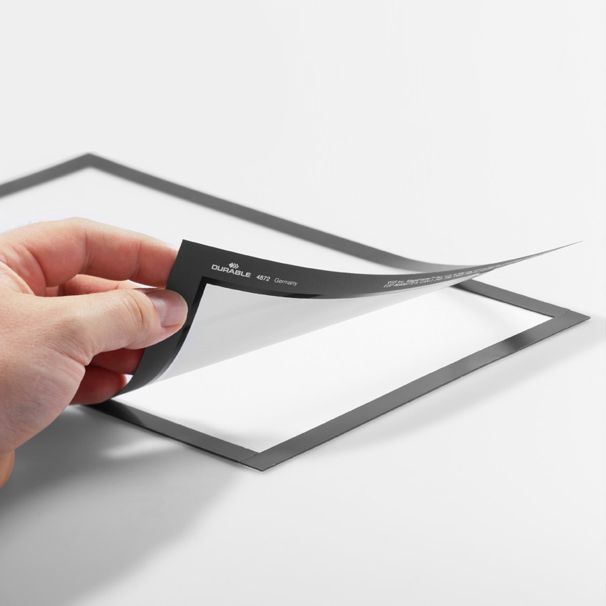 Les cadres (Duraframe® Magnetic Plus) adhèrent à toutes les surfaces métalliques comme les tableaux blancs, les panneaux métalliques, etc.