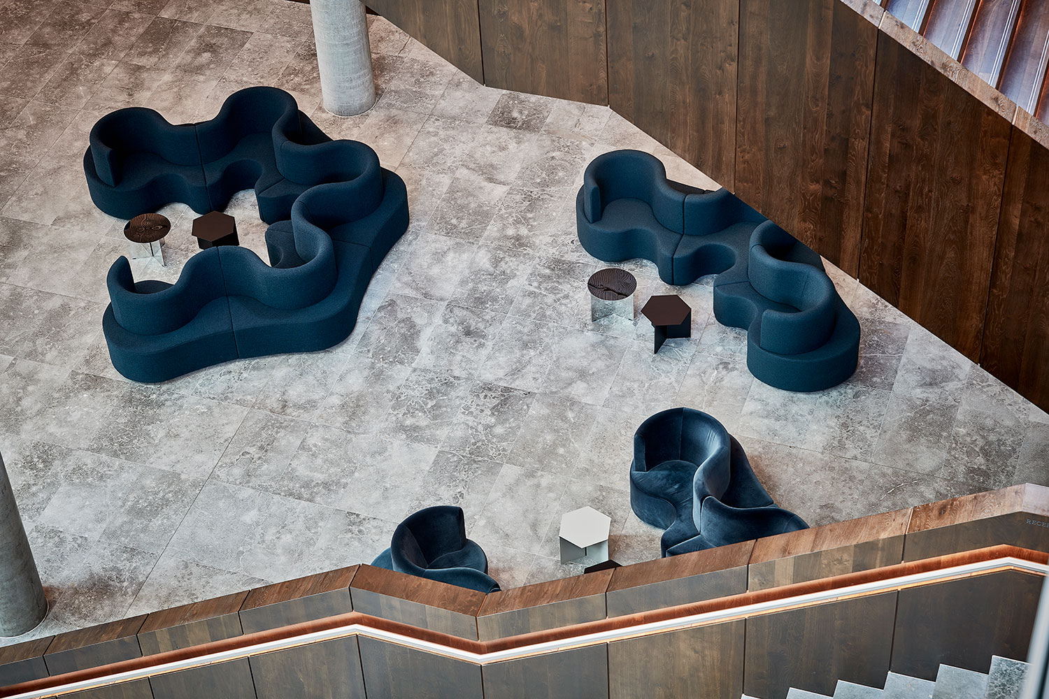 Cloverleaf est un système de canapé confortable modulable pouvant apporter un élément sculptural dans un espace public.