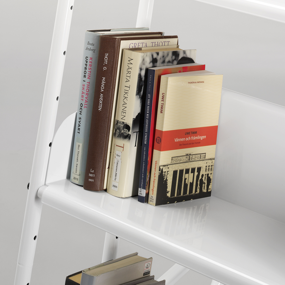 Chariot stable simple face avec trois étagères inclinées, amovibles et réversibles pour différents types de médias et livres. Placez les étagères ou nécessaire en utilisant les trous dans le cadre.
