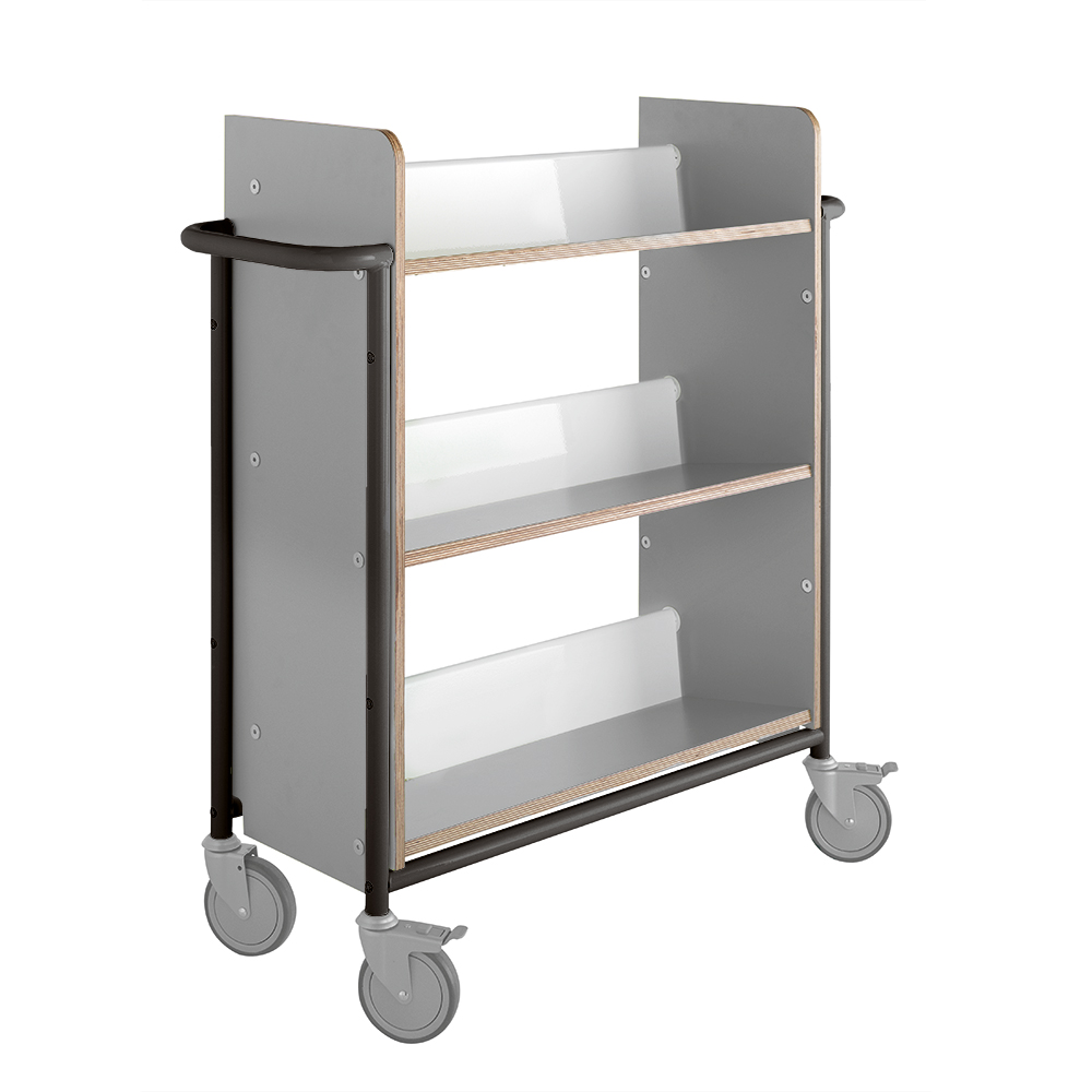Un chariot simple face fonctionnel à trois tablettes inversées offrant une grande profondeur et un bel espacment entre elles.