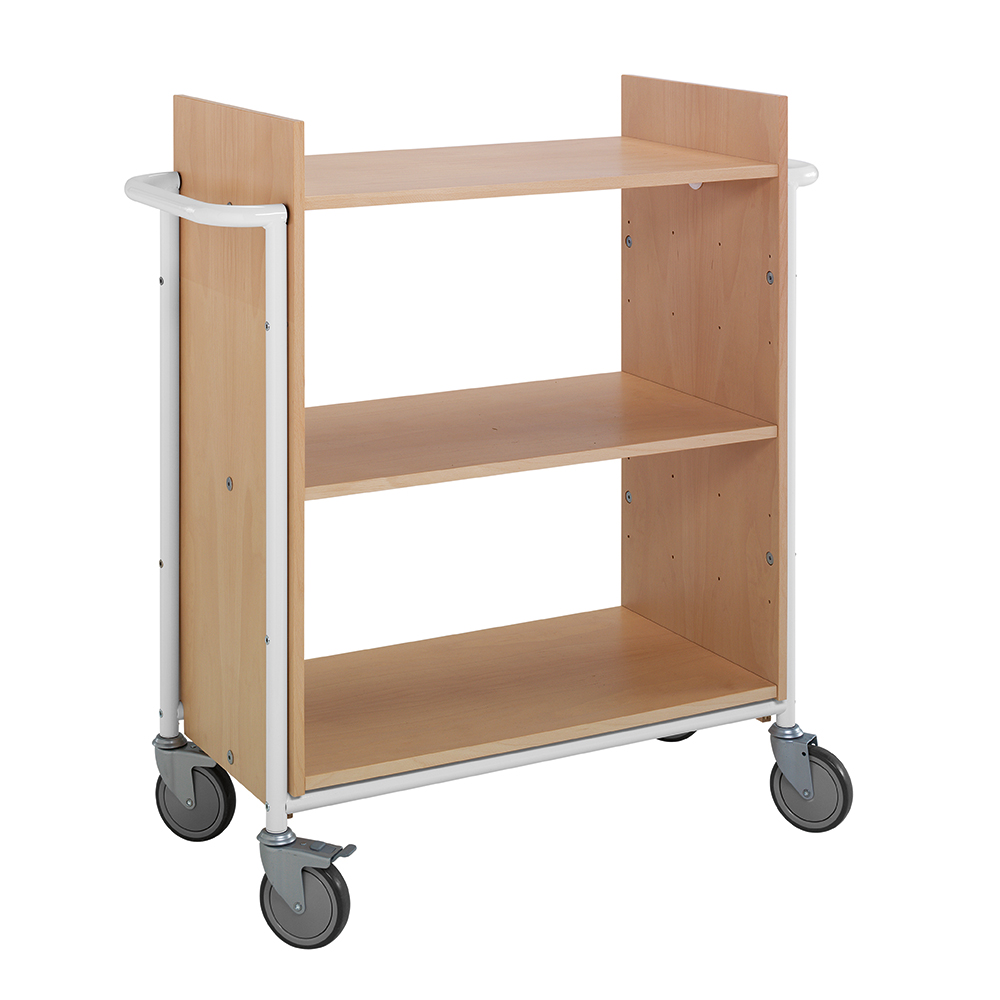 Chariot double face avec trois étagères planes bien dimensionnées.