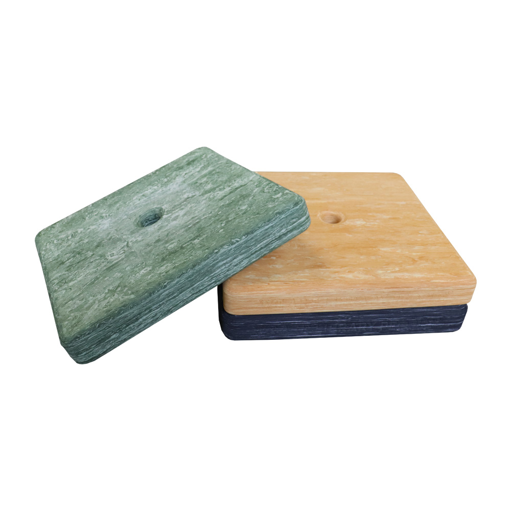 Les coussins sont disponibles dans plusieurs couleurs marbrées, inspirées par la nature. A poser sur le sol mais aussi sur gradins ou banquettes.