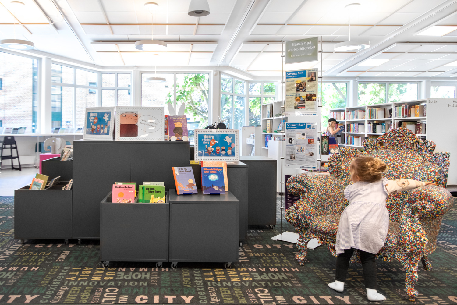 Grand fauteuil pour adultes et un cadre idéal pour raconter des histoires aux enfants.
