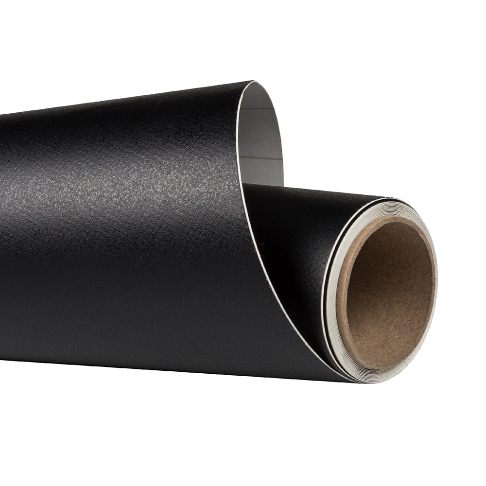 Film adhésif armé pour réaliser un grand tableau noir sur un mur ou une extrémité de rayonnage, ou plusieurs petits tableaux de formes diverses.