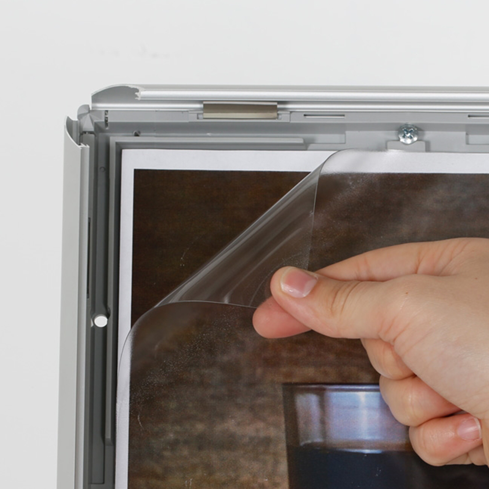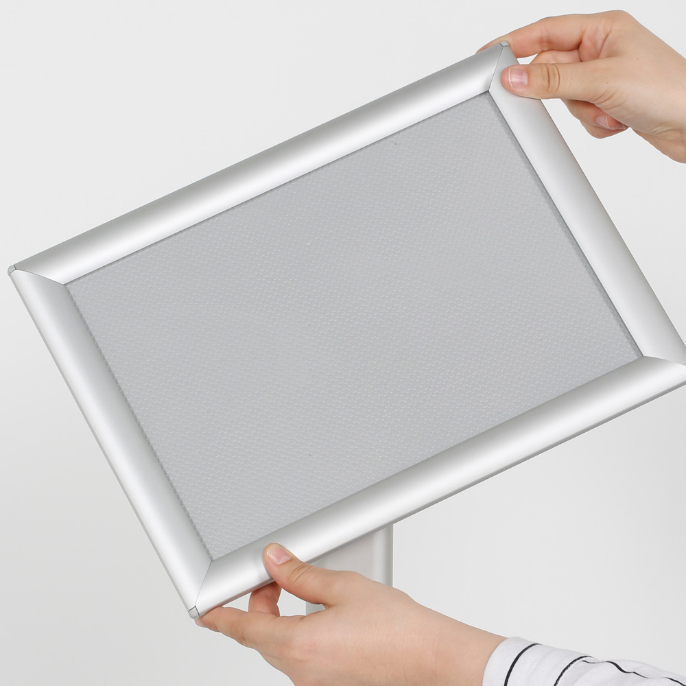 Cadre en profilé de 25 mm. Avec son pied robuste et sa vitre en plastique antireflet, ce pied d’information peut être utilisé n’importe où dans la bibliothèque ou dans les espaces de réception.