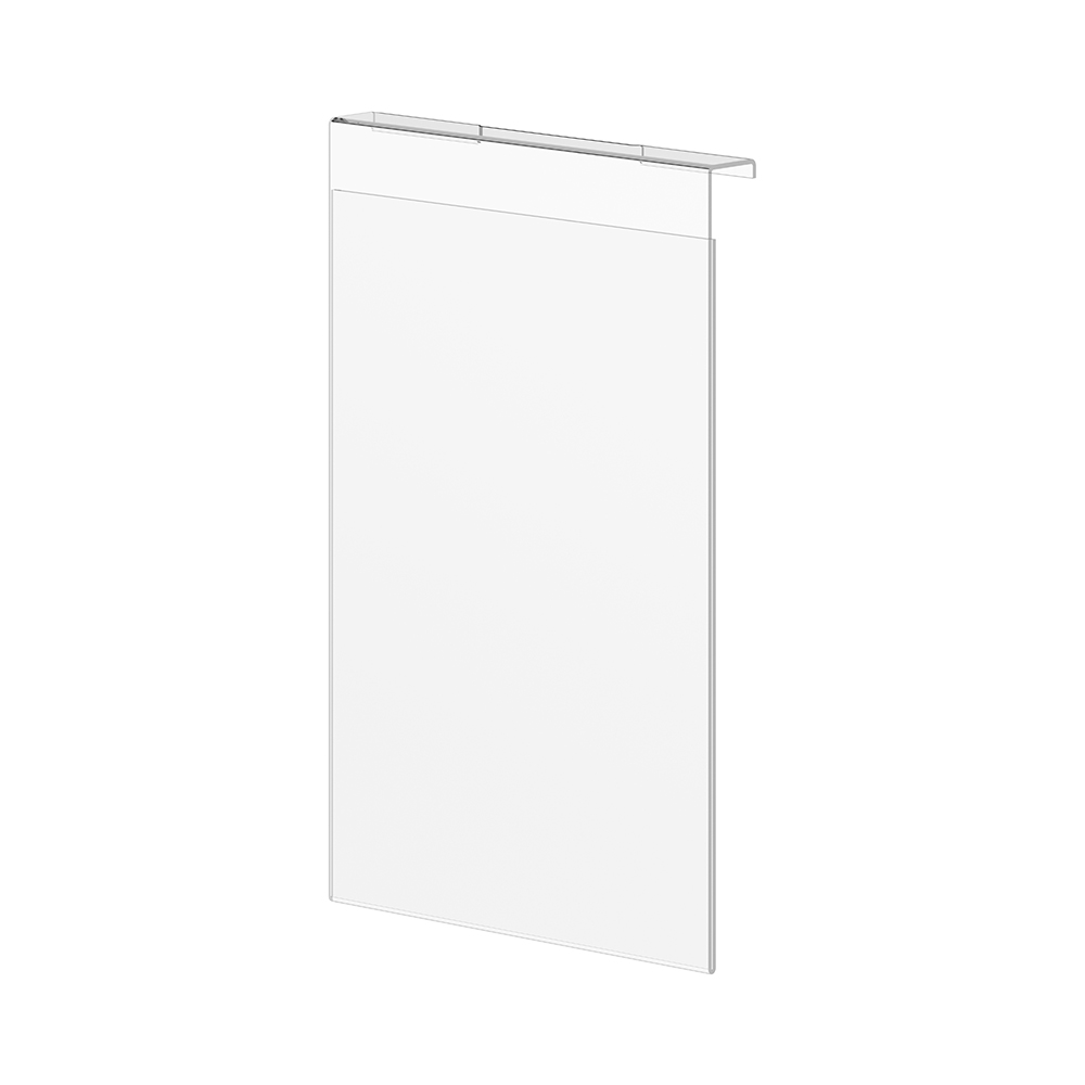 Porte affiche en acrylique anti-reflet pour panneau d’extrémité de rayonnage bois (max 22 mm) ou bac à livres (max 20 mm).