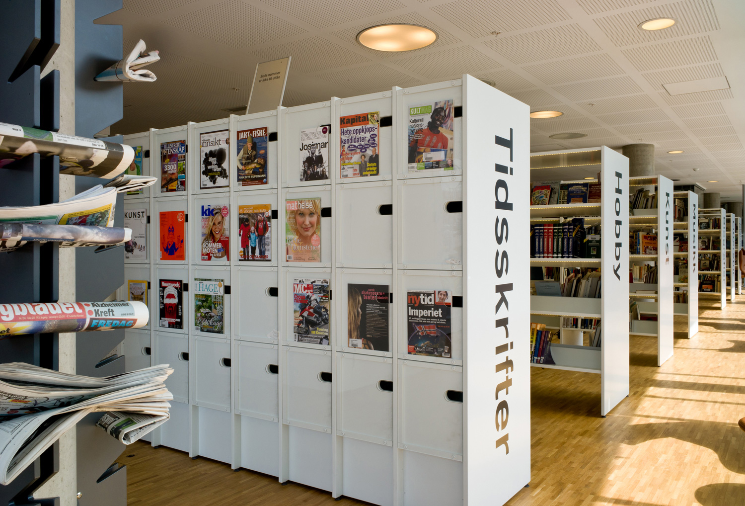 Le design rencontre la fonctionnalité! Le système de présentoirs à périodiques Ordrup répond à la fois aux besoins de présentation et de rangement.