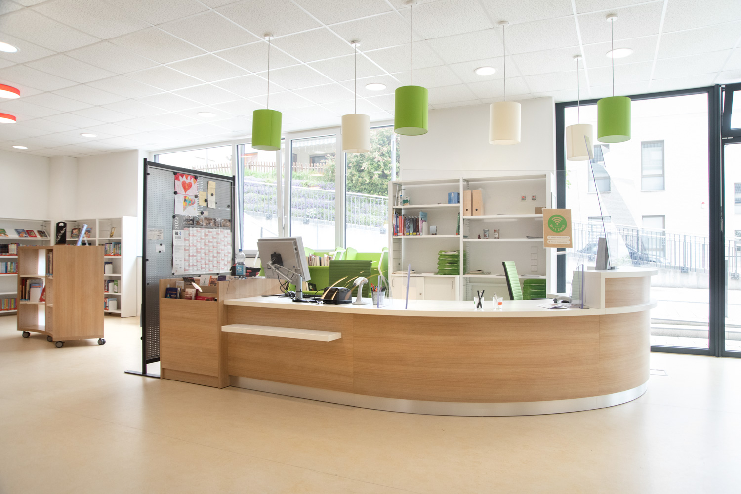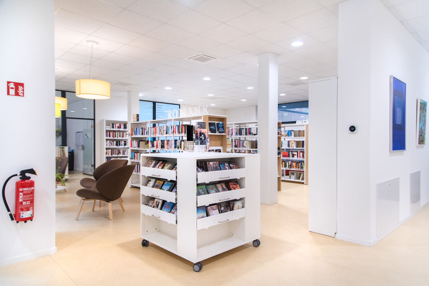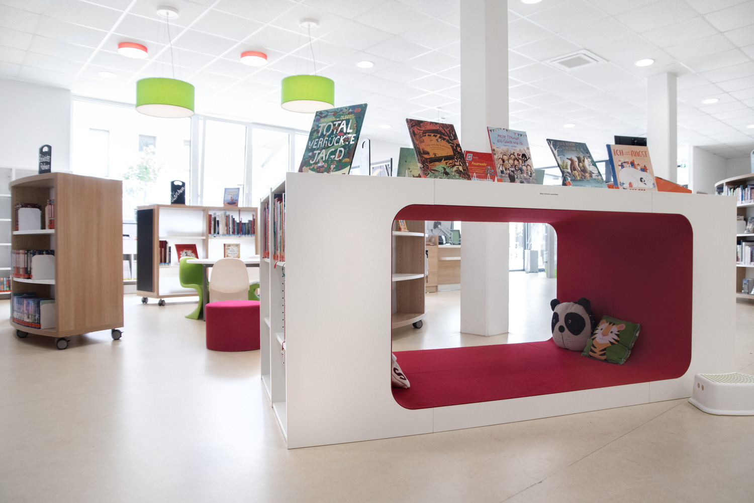 Notre équipe d'architectes, en collaboration avec la bibliothèque d'Ilsfeld, a proposé des solutions originales concernant les couleurs et les formes du mobilier. Cela a donné naissance à cette très belle bibliothèque, accueillante et de haute qualité.