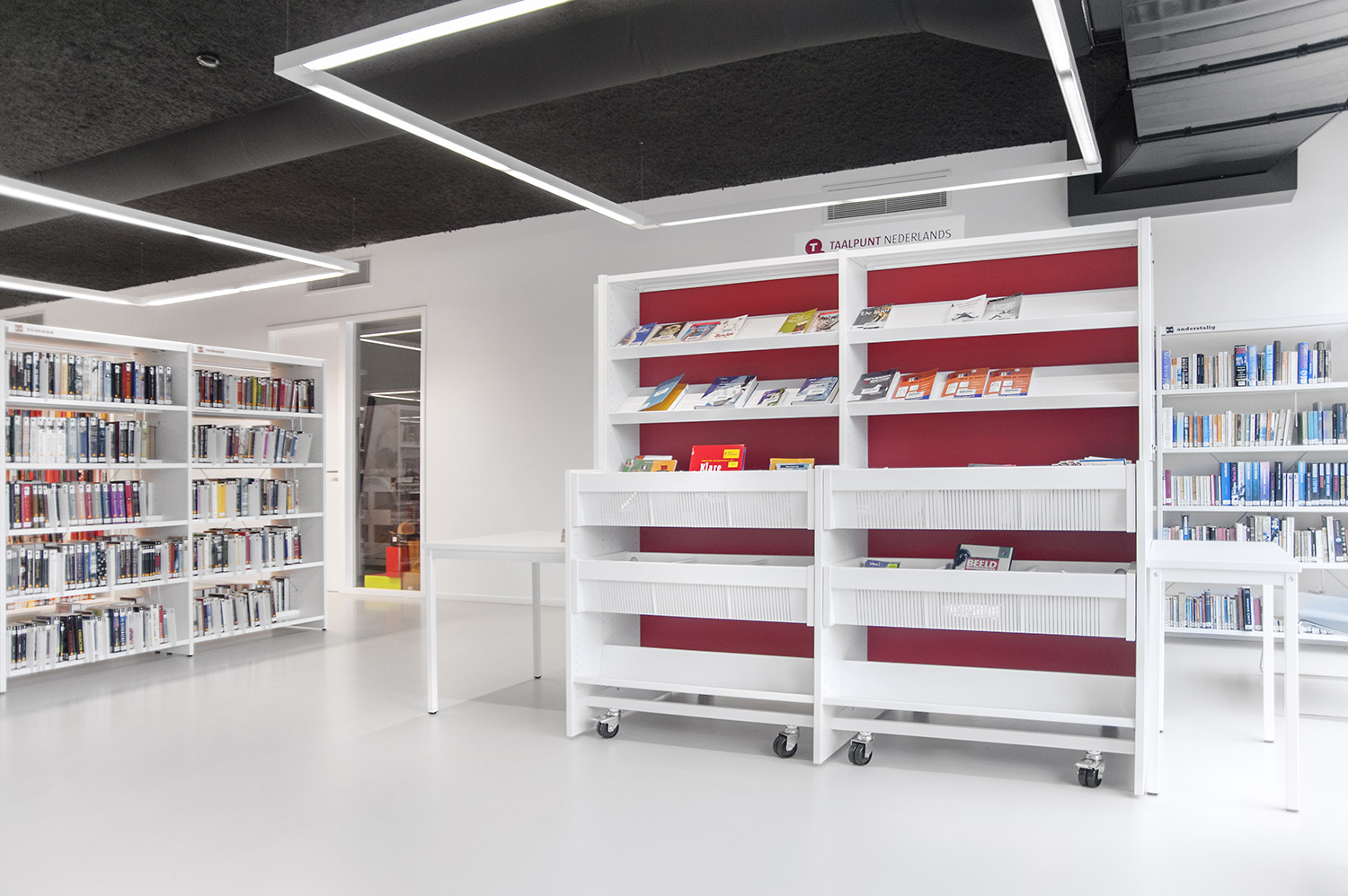L’aménagement de la bibliothèque d’Affligem est le fruit d’un concept particulier mis au point par le bureau d’architectes d’intérieur Pointiv : la bibliothèque en tant que reflet de l’habitat et du cadre de vie. La qualité de nos produits et notre capacité à proposer des solutions d’aménagement intérieur inspirantes ont permis la concrétisation de cette vision architecturale.
