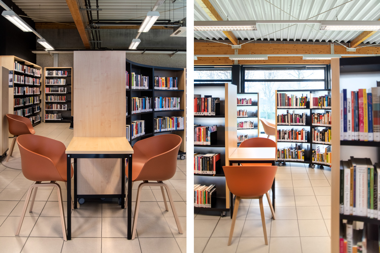 Bert Dekimpe ajoute : « Schulz Benelux s'est révélé être un partenaire constructif, ouvert à notre propre vision et en même temps prêt à nous donner des conseils utiles. Le résultat est une nouvelle bibliothèque complètement repensée et rénovée, dans laquelle il est très agréable de se retrouver, tant pour les visiteurs que pour le personnel".
