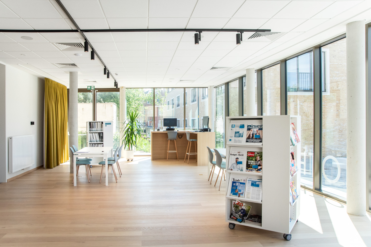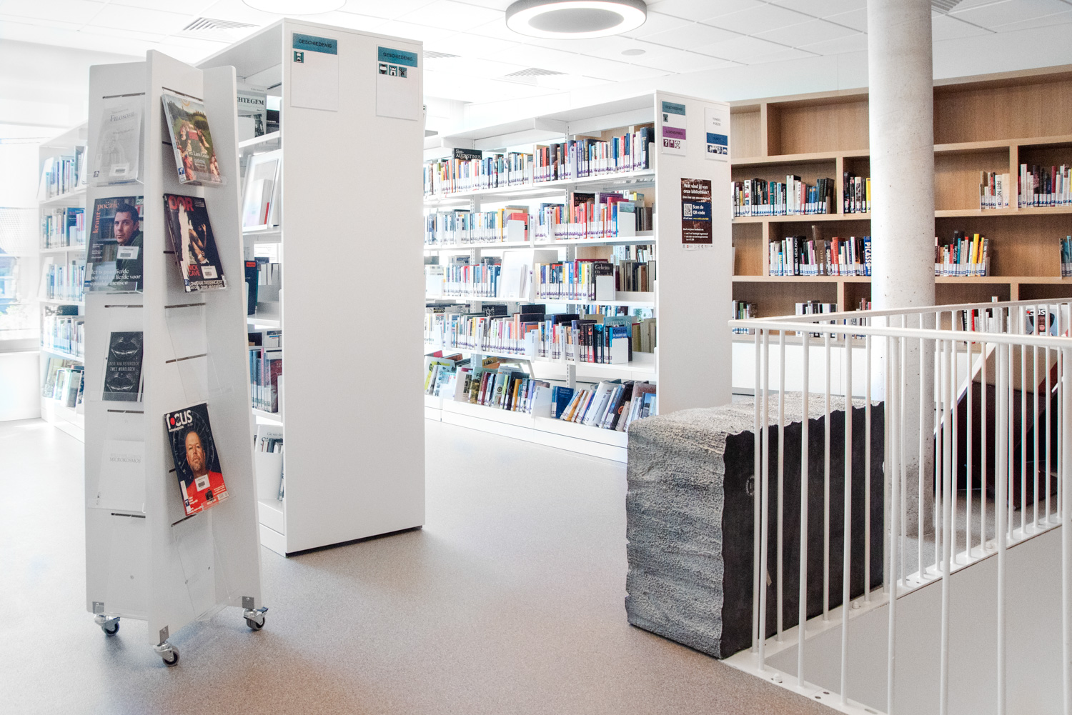 La conception de la nouvelle bibliothèque, installée dans une ancienne malterie (mouterij en flamand), répond à la tendance actuelle qui consiste à se concentrer sur l'expérience et la rencontre. La bibliothécaire Elke Vandewalle déclare: « Nous avons créé des assises confortables dans divers endroits où nous voulons encourager les utilisateurs de nos bibliothèques à « s’attarder un moment ». La salle de lecture est par ailleurs un espace indépendant et confortable, dont les heures d'ouverture sont plus longues que celles de la bibliothèque elle-même. En même temps, nous avons essayé de créer autant de perméabilités que possible. Nous avons associé autant que faire se peut les espaces avec des plafonds assez bas à des étagères plus basses."
