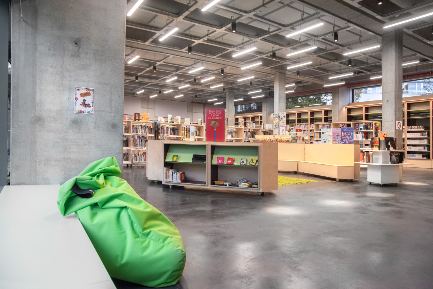 La nouvelle bibliothèque est installée dans un vaste bâtiment qui peut accueillir de nombreux événements et expositions. Elle dispose par ailleurs d'un jardin potager collectif sur le toit.