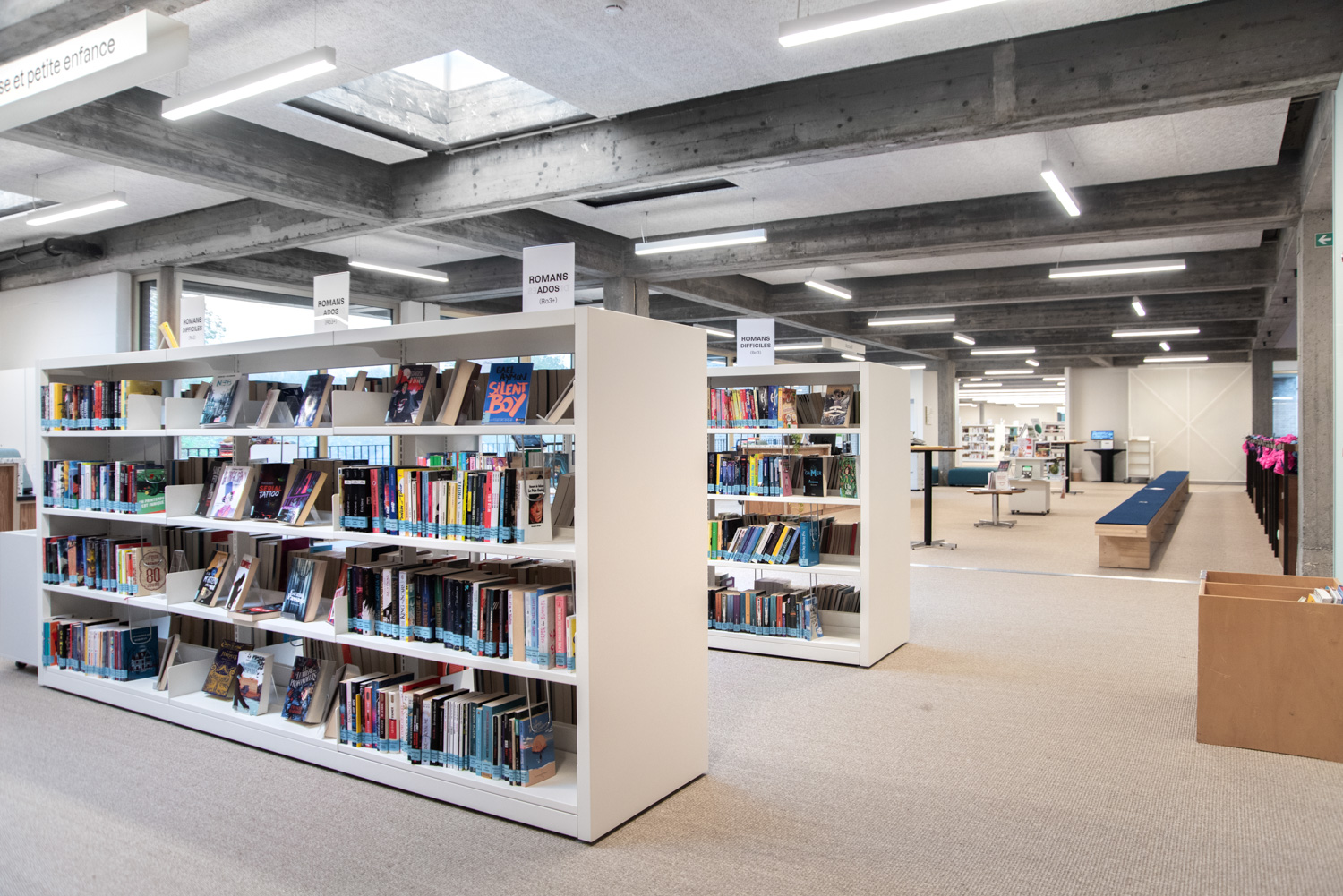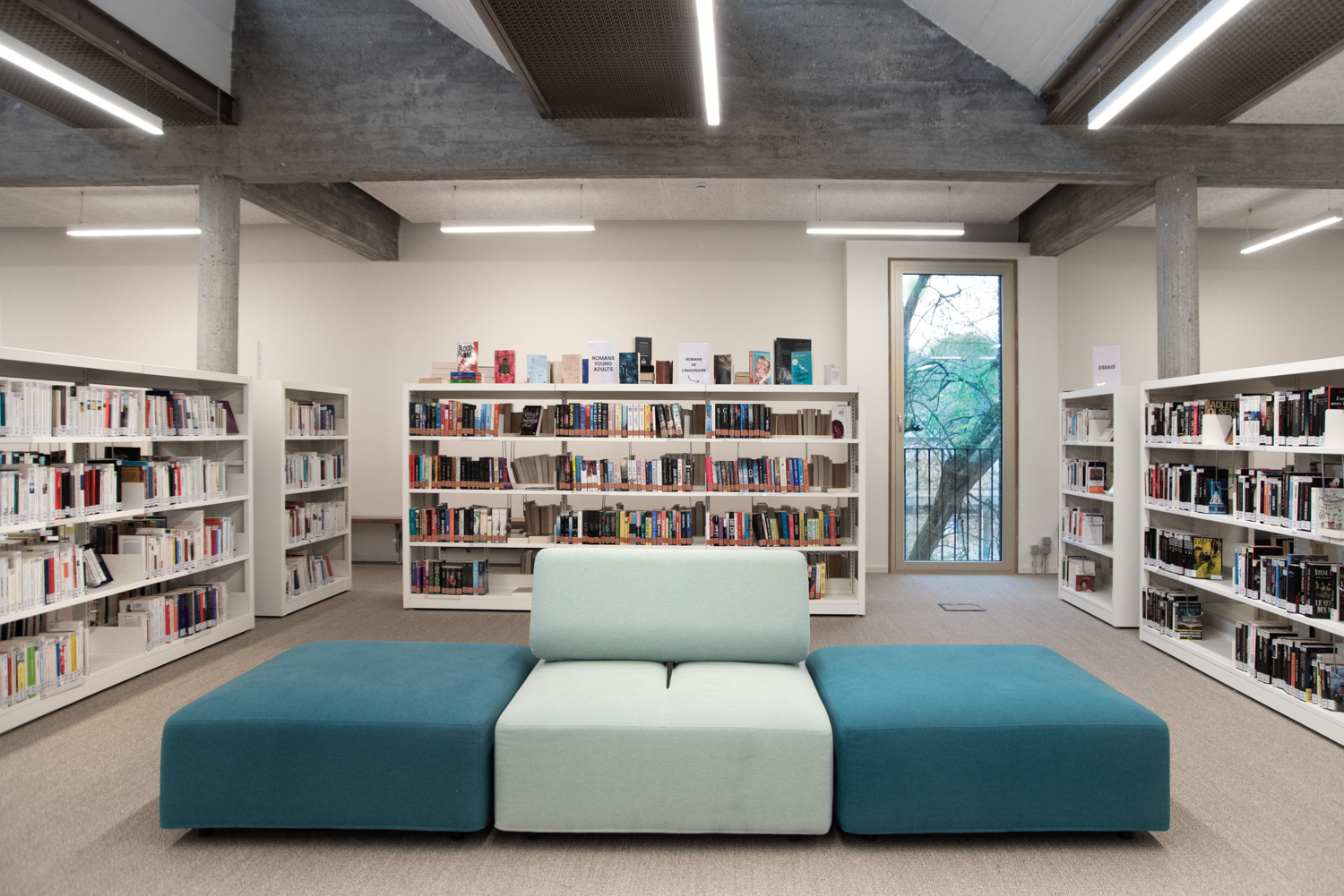 La nouvelle bibliothèque est située dans un espace entièrement rénové, lumineux et accueillant au sein d'un centre culturel. Avec son mobilier moderne et l’aménagement soigneusement pensé des rayonnages, elle invite à une circulation fluide et intuitive dans des espaces lumineux et spacieux.