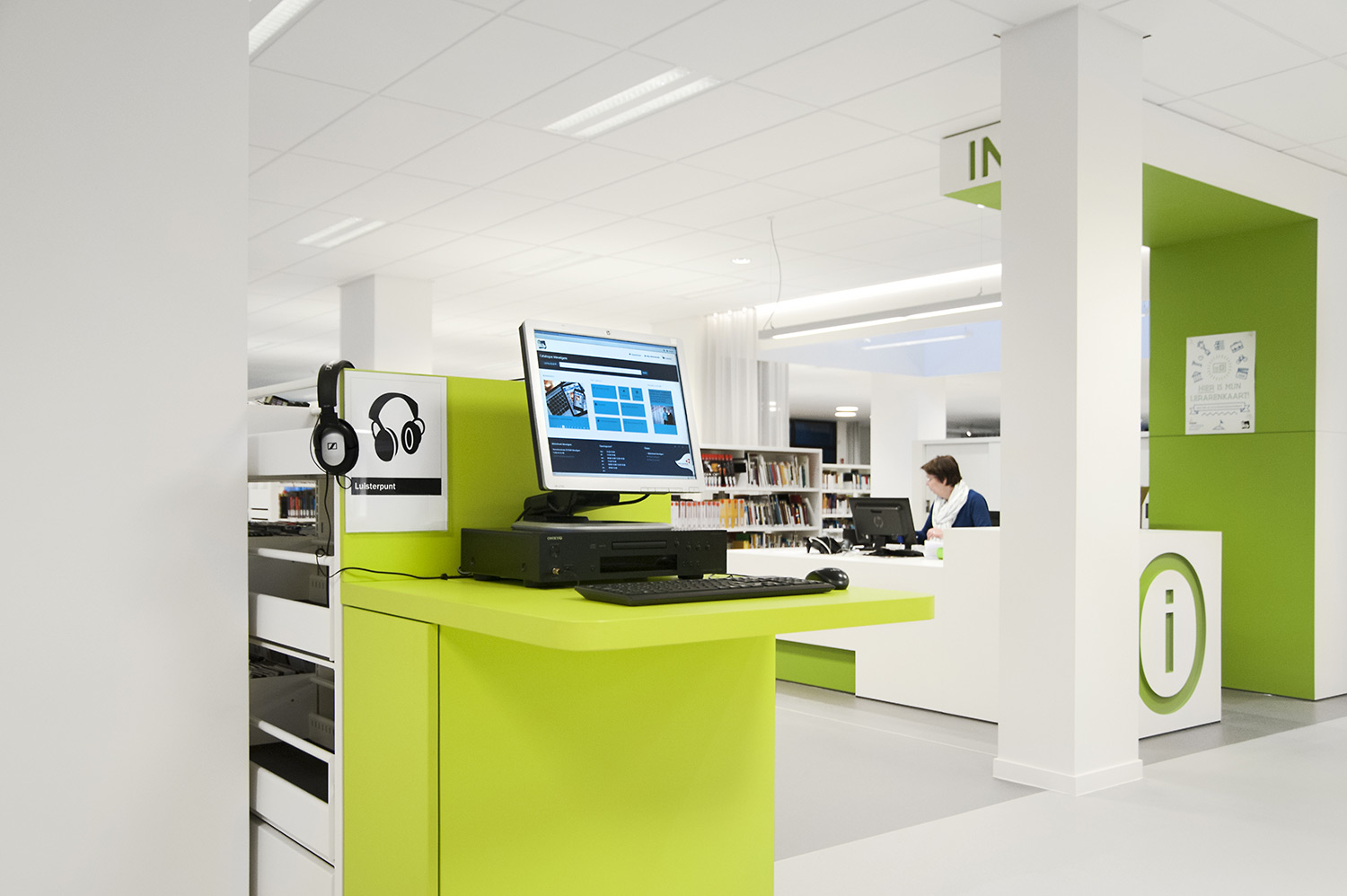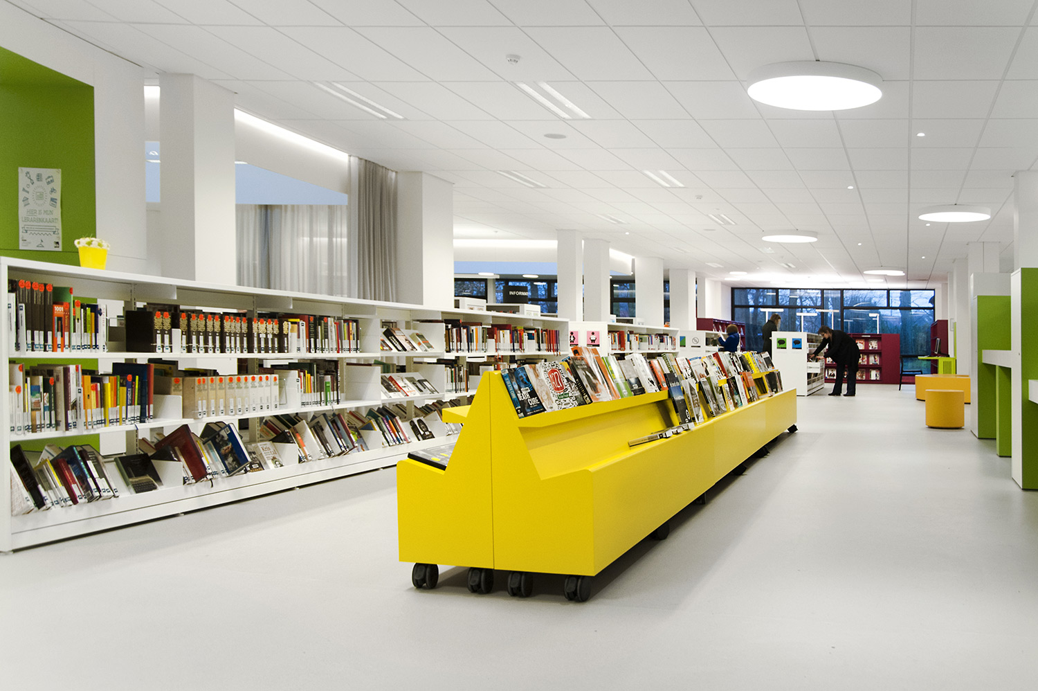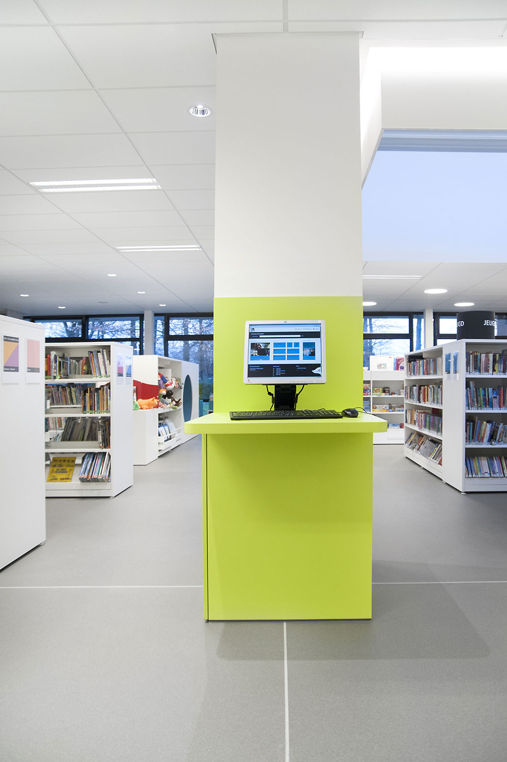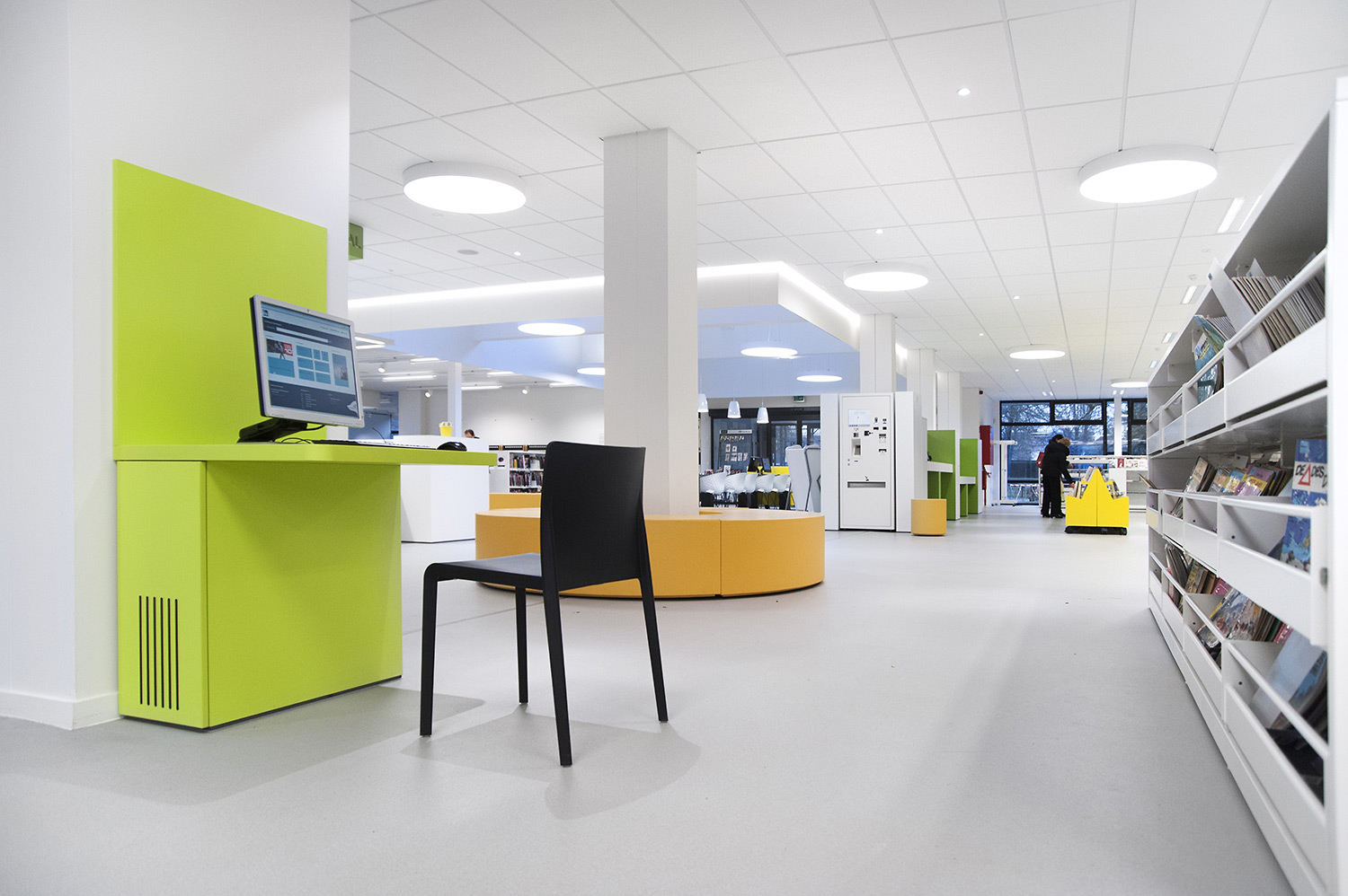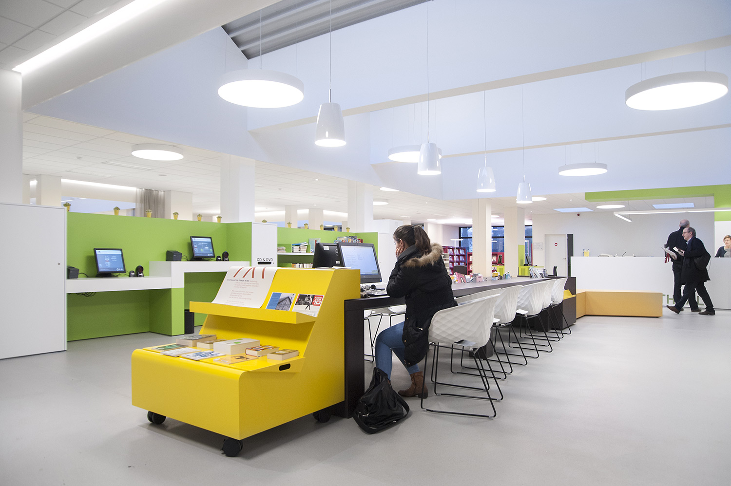 D’une part, le bâtiment a évolué, mais la façon dont la bibliothèque fonctionne également. La bibliothèque de Wevelgem est ce qu’on appelle une bibliothèque orientée vers l’utilisateur, c’est-à-dire une bibliothèque qui accorde beaucoup d’importance à un mode de fonctionnement reposant sur la possibilité de poser des questions : les visiteurs peuvent s’adresser au personnel de la bibliothèque qui les aide et les oriente.