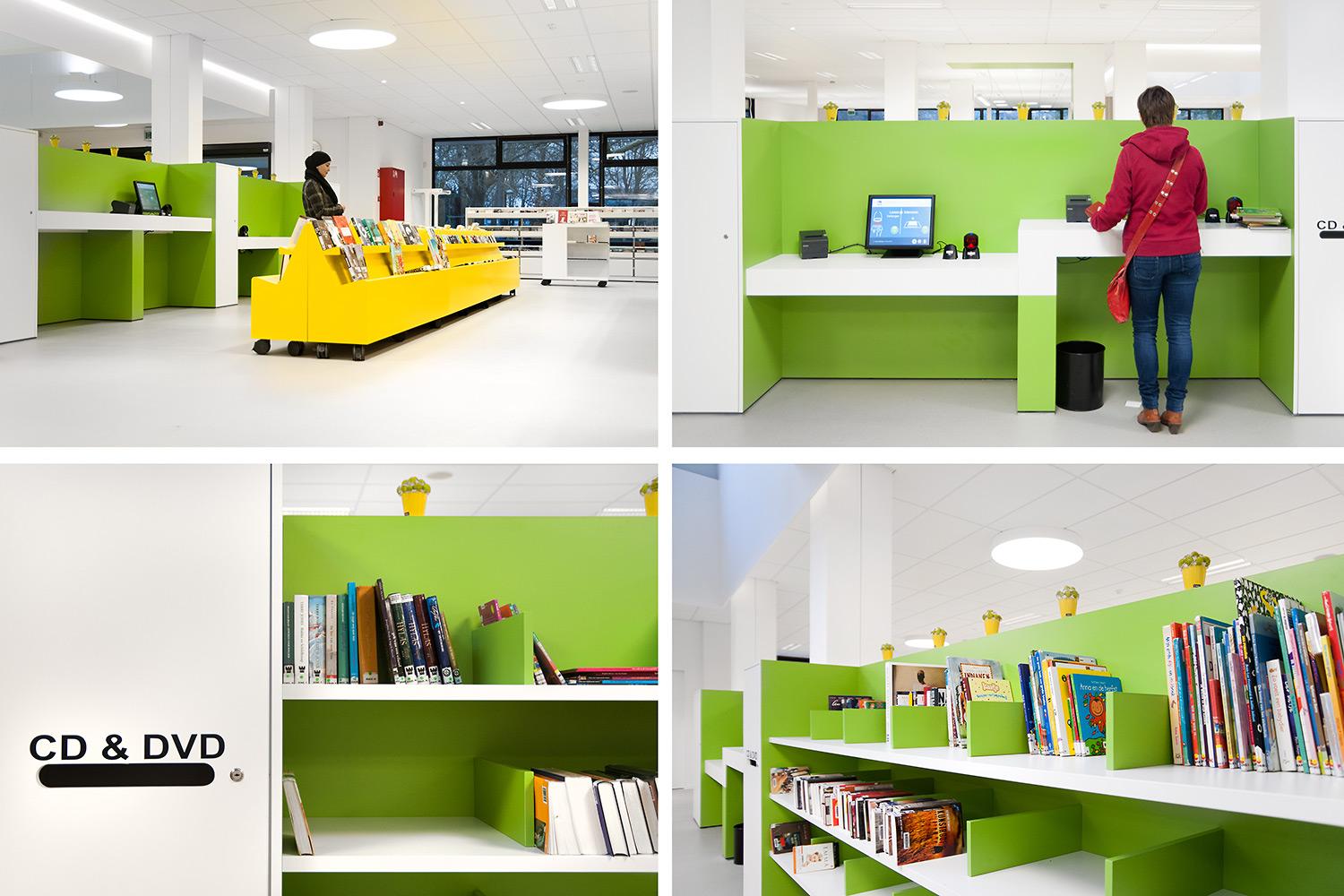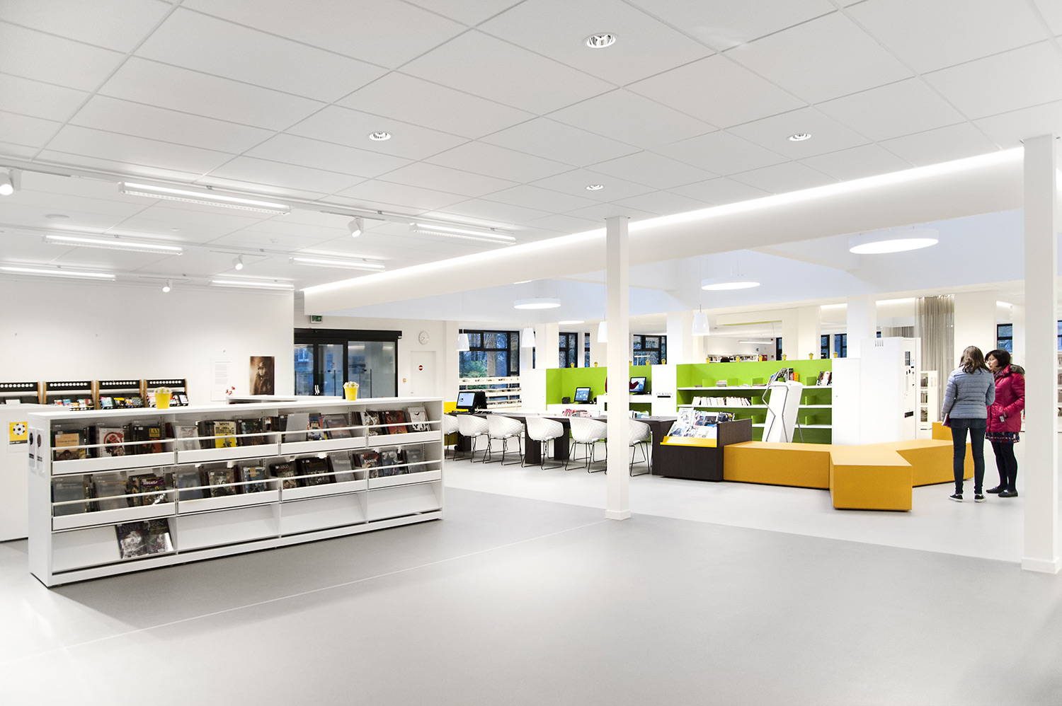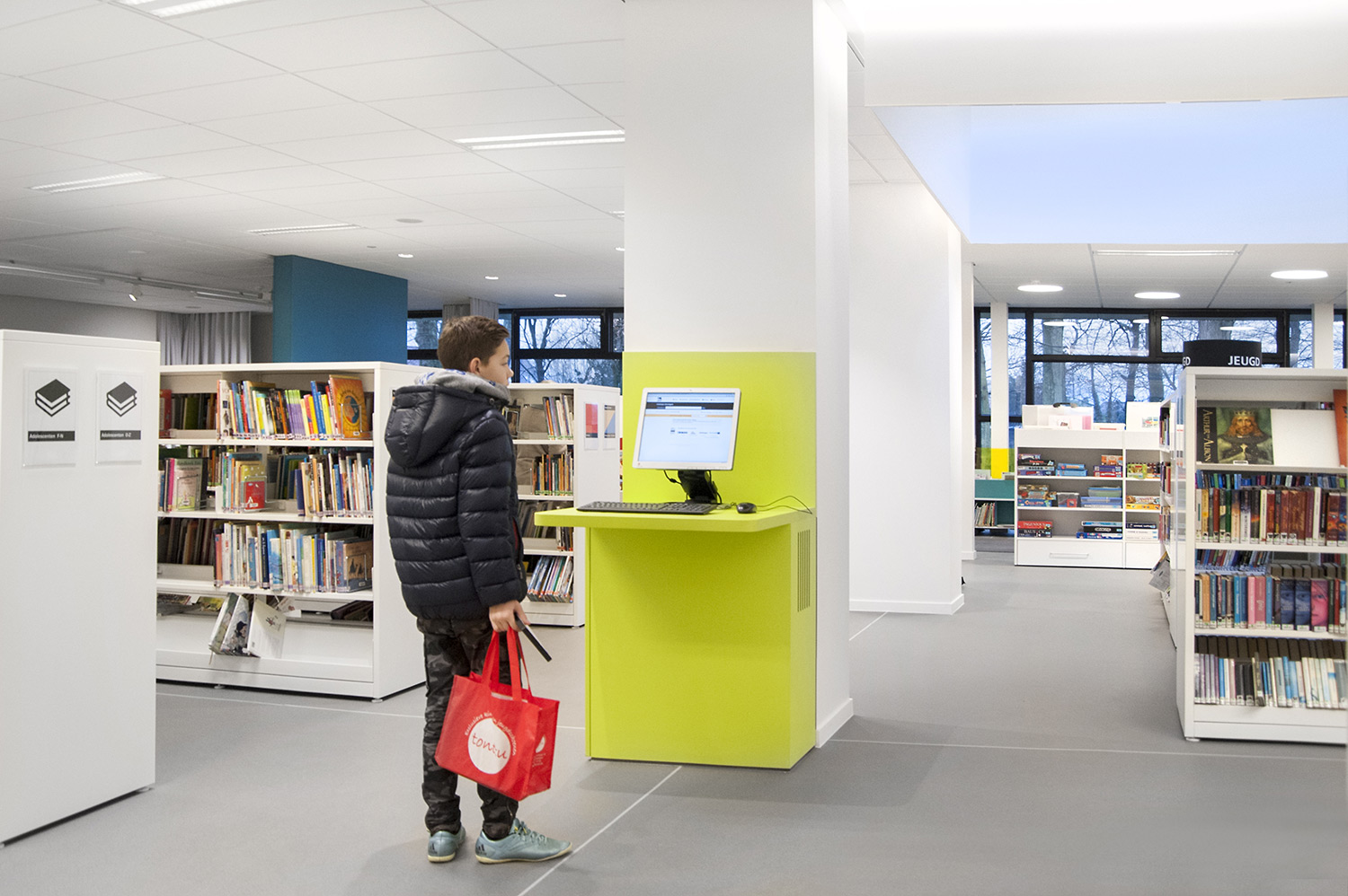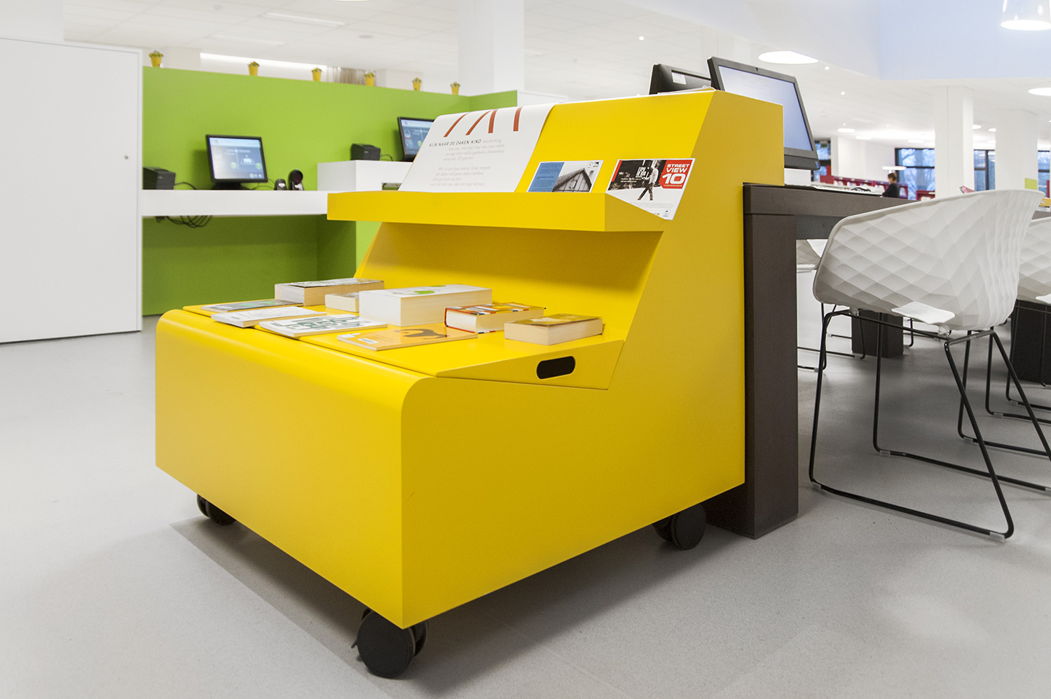 D’une part, le bâtiment a évolué, mais la façon dont la bibliothèque fonctionne également. La bibliothèque de Wevelgem est ce qu’on appelle une bibliothèque orientée vers l’utilisateur, c’est-à-dire une bibliothèque qui accorde beaucoup d’importance à un mode de fonctionnement reposant sur la possibilité de poser des questions : les visiteurs peuvent s’adresser au personnel de la bibliothèque qui les aide et les oriente.