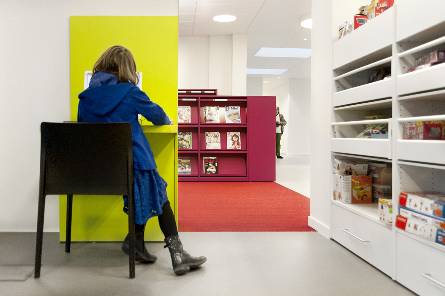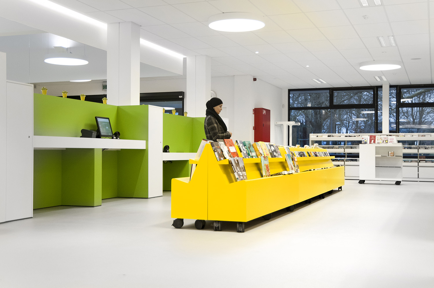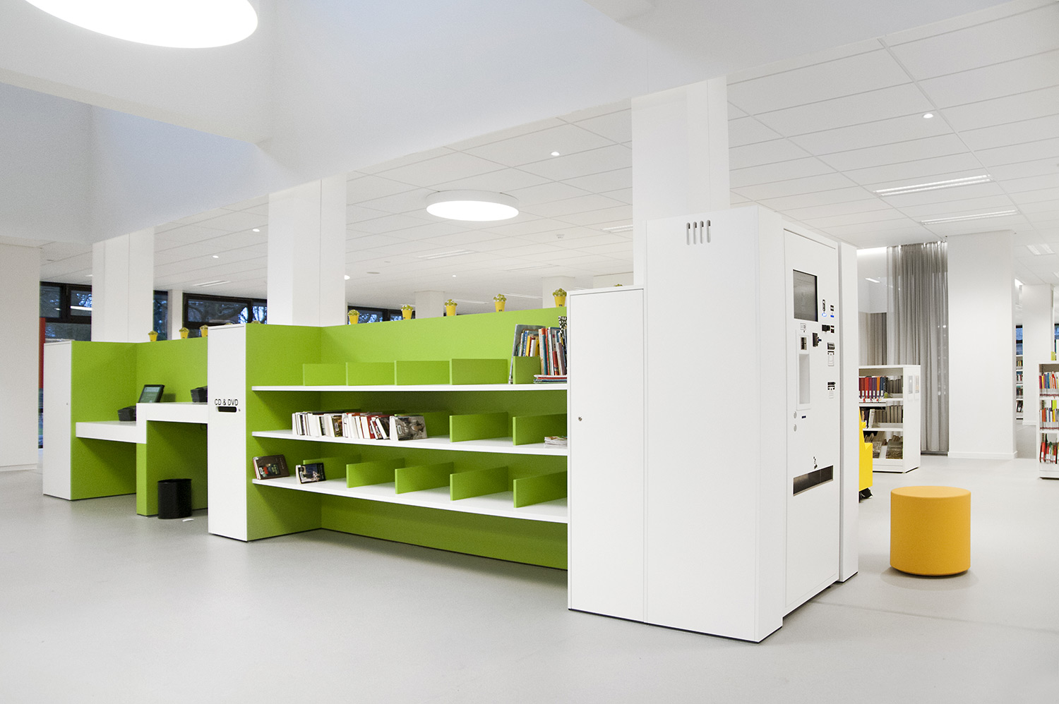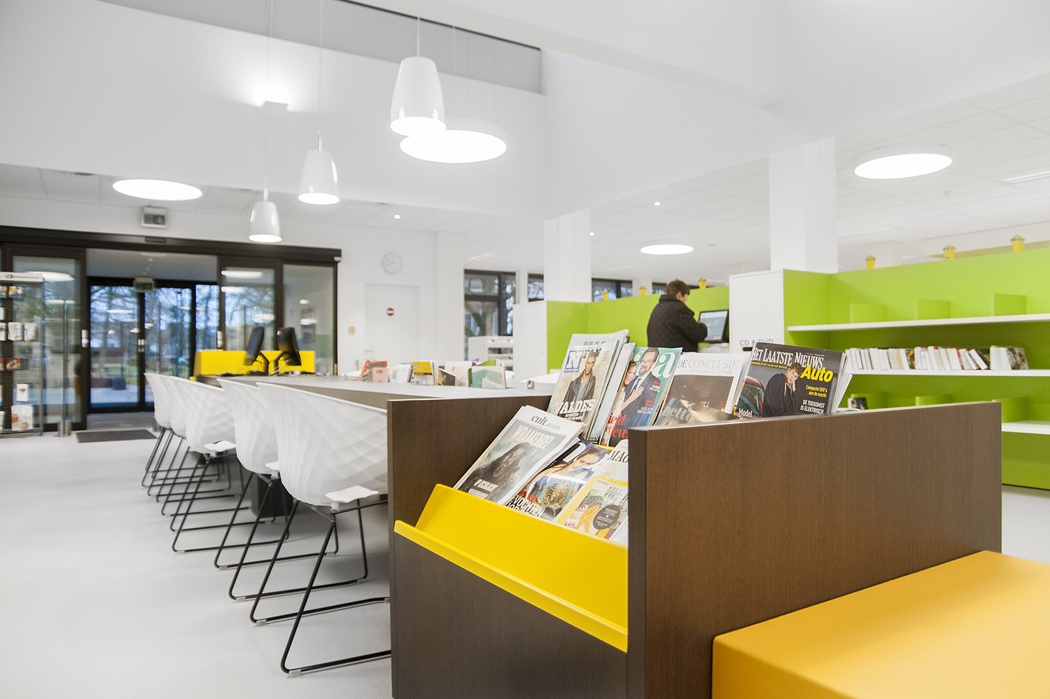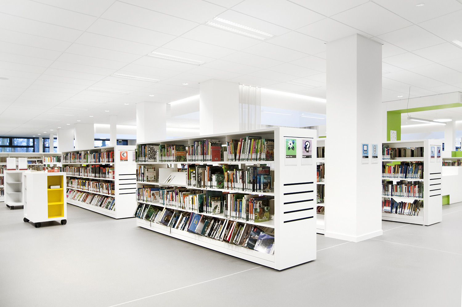 D’une part, le bâtiment a évolué, mais la façon dont la bibliothèque fonctionne également. La bibliothèque de Wevelgem est ce qu’on appelle une bibliothèque orientée vers l’utilisateur, c’est-à-dire une bibliothèque qui accorde beaucoup d’importance à un mode de fonctionnement reposant sur la possibilité de poser des questions : les visiteurs peuvent s’adresser au personnel de la bibliothèque qui les aide et les oriente.