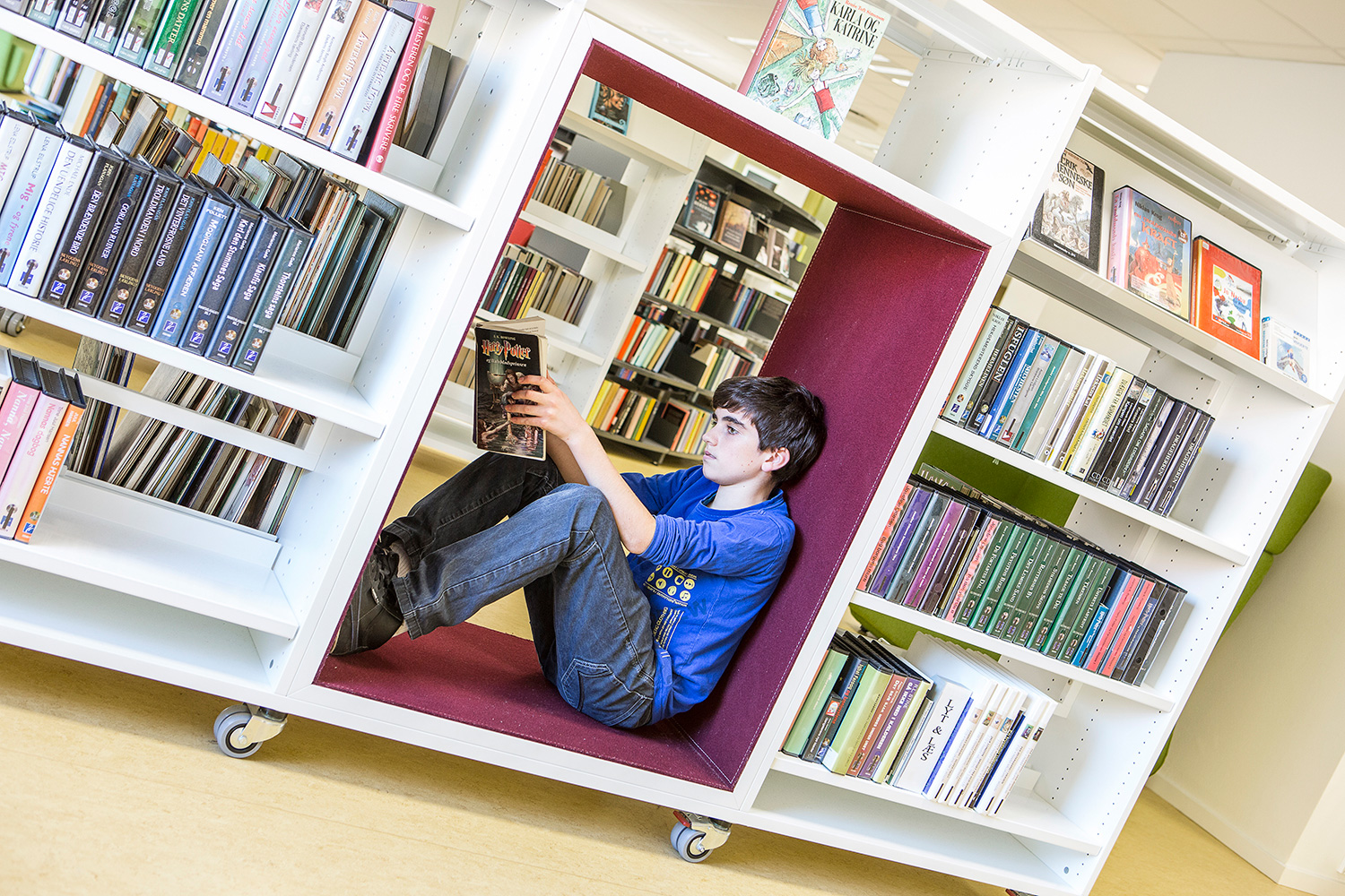 Le projet d’extension de l’école publique de Christiansfeld prévoyait l’intégration de la bibliothèque scolaire à la bibliothèque publique. La nouvelle bibliothèque combinée fait désormais le bonheur des écoliers, des lecteurs de Christiansfeld et du personnel. Le projet qui a débuté par des enchères inversées avec une gamme de prix donnée nous a permis d’émettre des suggestions pour la décoration intérieure et le mobilier tout en prenant en considération les demandes de la bibliothèque en termes de capacités et de fonctions. Grâce à nos compétences en matière de conception de bibliothèques, nous avons pu créer en collaboration avec la bibliothèque un espace accueillant, doté d’un intérieur flexible prévu pour différents groupes d’utilisateurs.