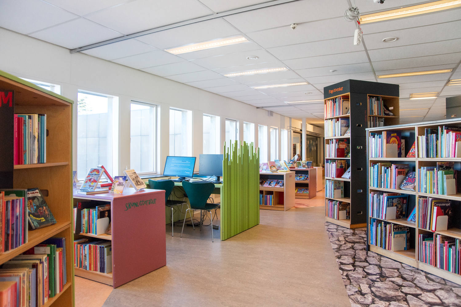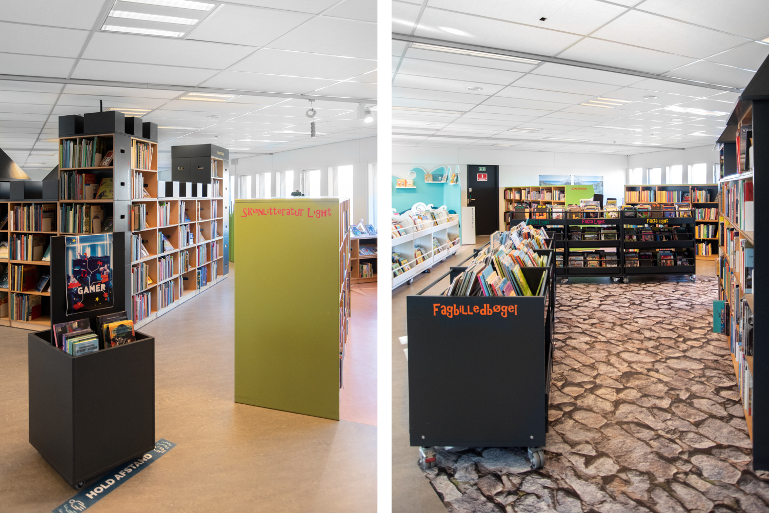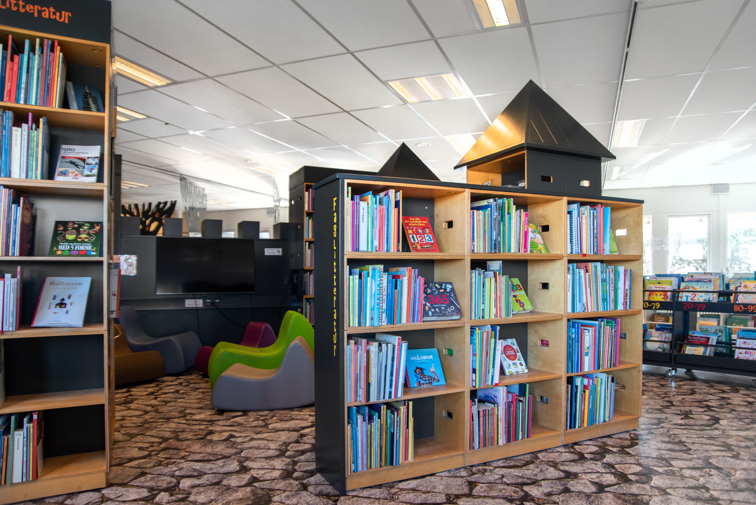 Pia Gunilla Park, communicatrice culturelle à la bibliothèque Guldborgsund, déclare : « Nous avons été très impliqués dans le processus. Nous étions super excités par la présentation que nous avons reçue d’Unni, architecte chez Lammhults Biblioteksdesign, qui a réussi à traduire parfaitement et rapidement nos attentes. Elle a proposé des mobiliers et revêtement de sol spéciaux pour raconter l’histoire basée sur nos idées et envies. Les plus petits sont particulièrement attirés par la mer et les poissons dessinés sur le sol. Les 5 à 11 ans profitent grandement de la nouvelle salle d’activité. Les ados, quant à eux, se regroupent surtout au sein du château et de l’espace jeu. Les possibilités sont aujourd’hui infinies », ajoute Pia.