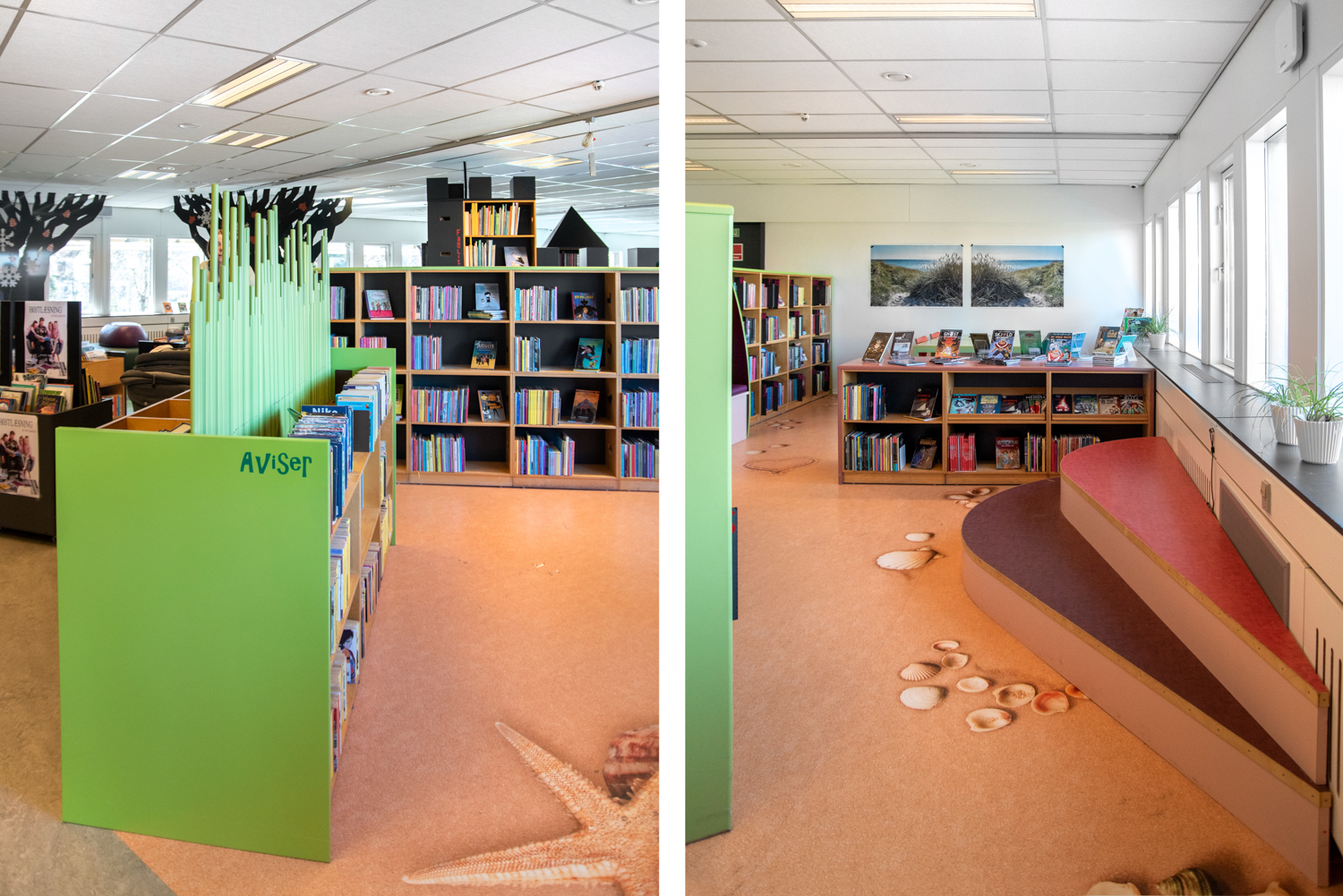Le projet intérieur a commencé à l’automne 2017. En collaboration avec les architectes de Lammhults Biblioteksdesign A/S, le groupe de bibliothécaires du département jeunesse a commencé à décorer et à transformer l’espace en s’inspirant de l’histoire de la commune de Guldborgsund.