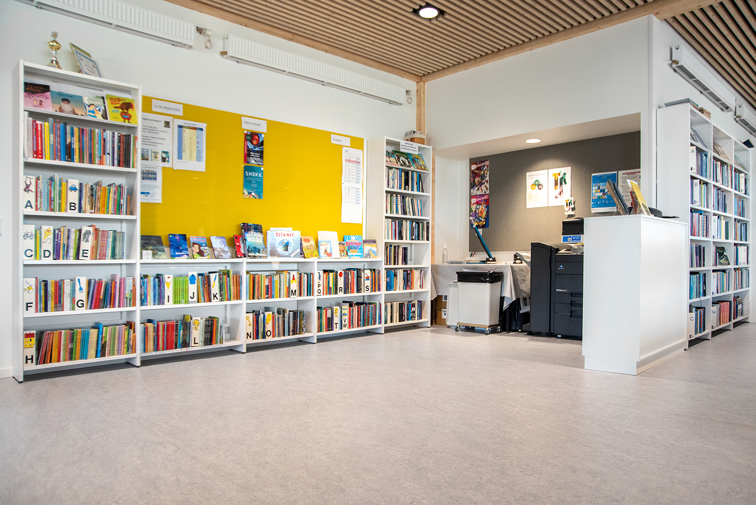 Lammhults Biblioteksdesign A/S a conçu et livré le centre d'apprentissage (bibliothèque) de l'école, qui est adapté à un avenir où les besoins des étudiants en matière de socialisation, d'espace libre et d'immersion sont la priorité absolue.