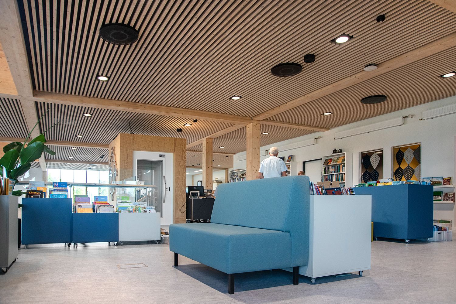 Les visions de l'école en matière de climat et de durabilité sont respectées avec nos étagères et notre mobilier nordique en bois certifié écologique et FSC. De même, tous les revêtements des canapés et des poufs sont en matériaux recyclés.