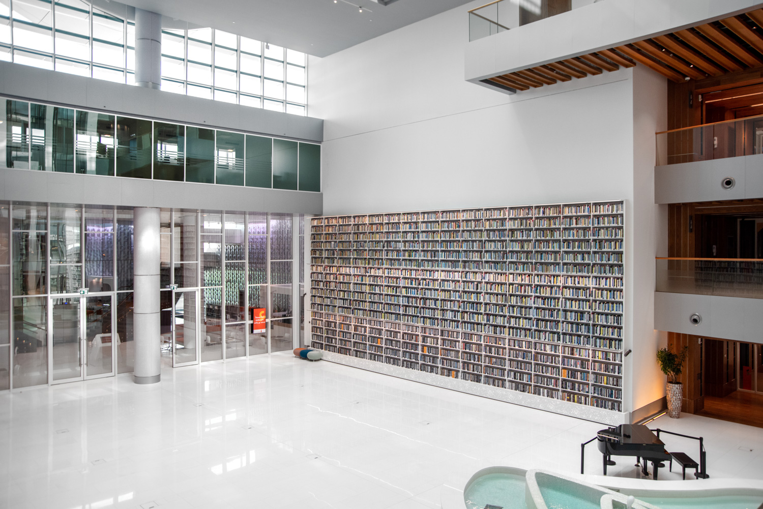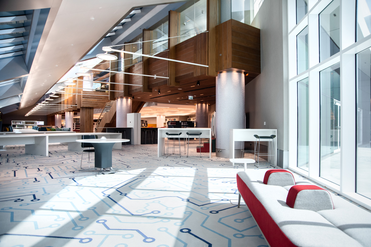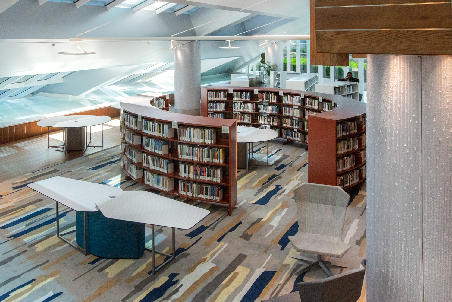 Le design de cette nouvelle réalisation permet l’intégration des différentes fonctionnalités que l’on retrouve dans les bibliothèques modernes. Elle comporte différents espaces dédiés au public destinataire de cet équipement. Elle comporte également en son sein un espace VIP, une espace coloré pour les enfants, un centre de recherches mais également un espace de relaxation.