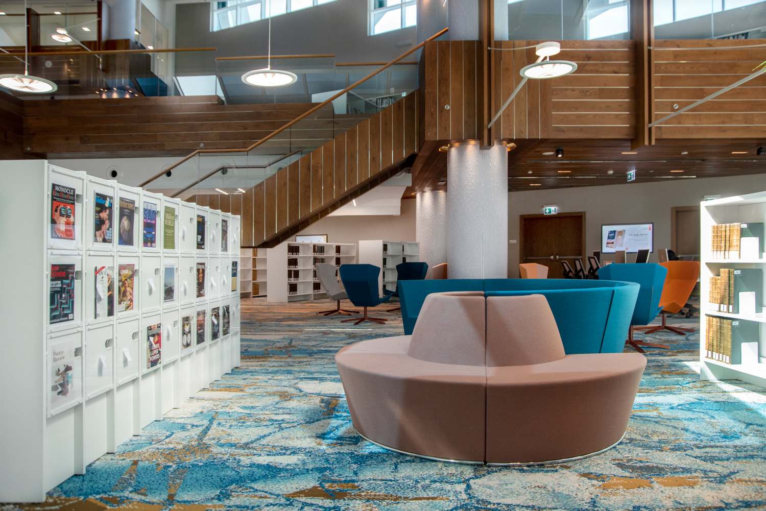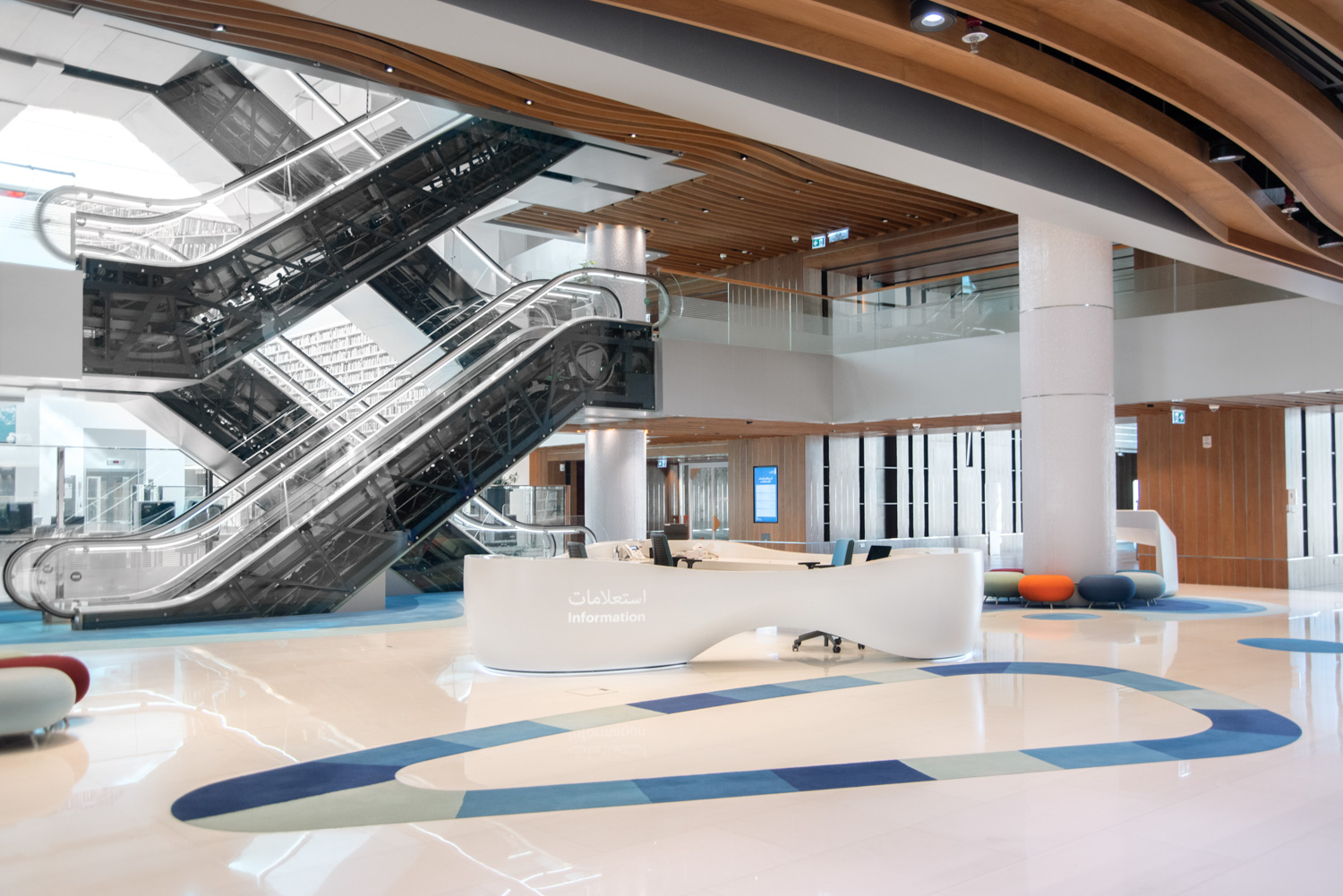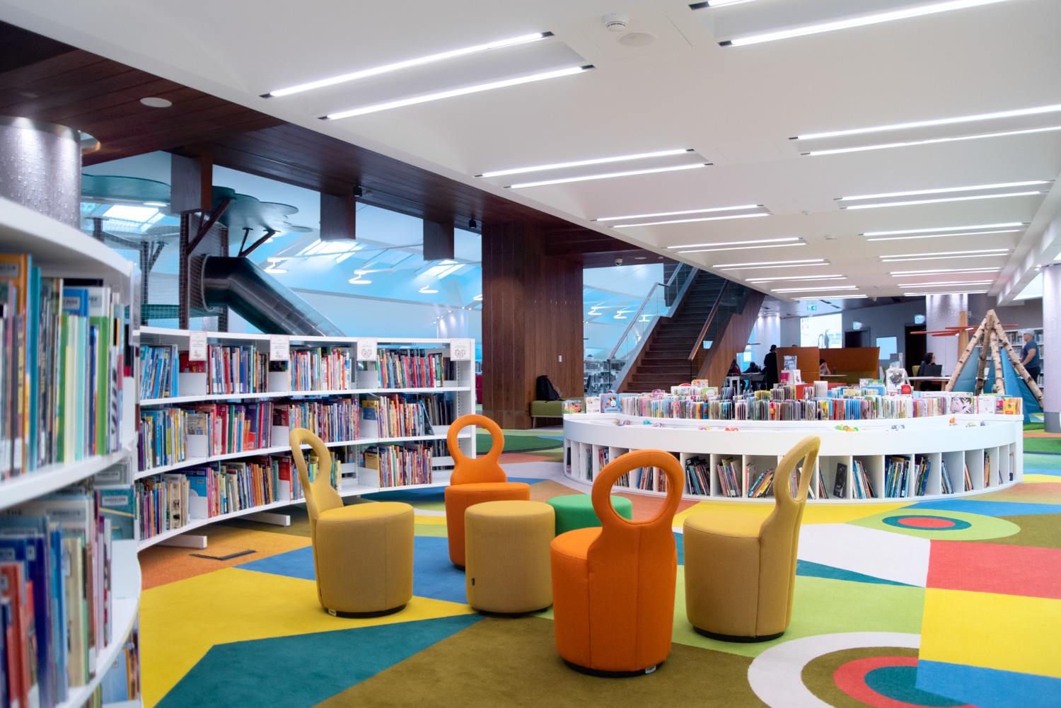 Le design de cette nouvelle réalisation permet l’intégration des différentes fonctionnalités que l’on retrouve dans les bibliothèques modernes. Elle comporte différents espaces dédiés au public destinataire de cet équipement. Elle comporte également en son sein un espace VIP, une espace coloré pour les enfants, un centre de recherches mais également un espace de relaxation.