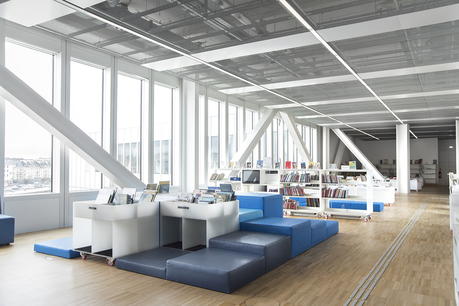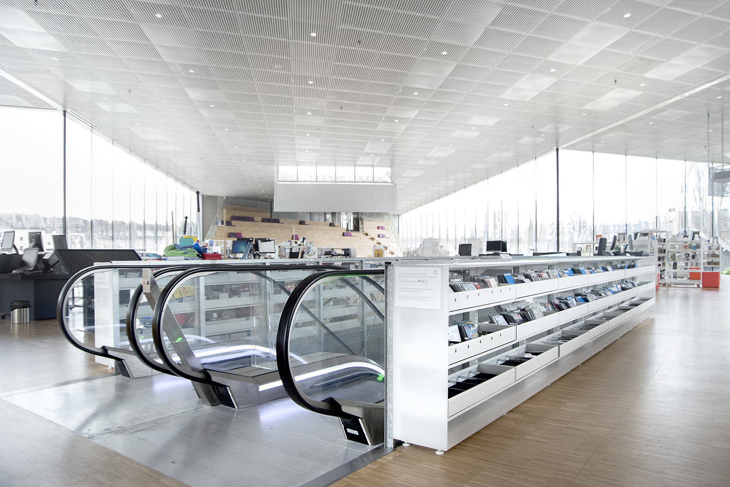 En collaboration avec les architectes, BCI a réalisée et installée tout le mobilier spécifique, rayonnages/bacs/vitrines/présentoirs/postes d’info, (mobilier néanmoins basé sur des éléments standards BCI, ayant déjà prouvés leur qualité et durabilité), ce qui donne à ce projet de bibliothèque son côté tout à fait unique.