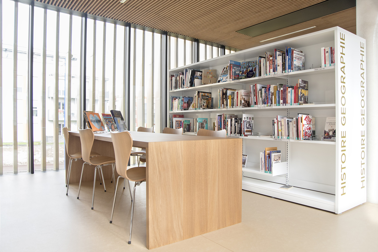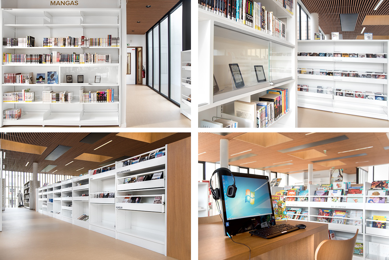 Produits utilisés à la Médiathèque Quai des Mondes, Mondeville, France