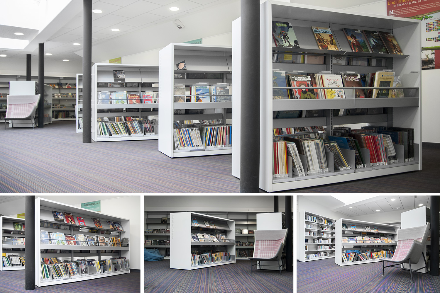 Produits utilisés à la Médiathèque Lagirafe, Montfort-sur-Meu, France