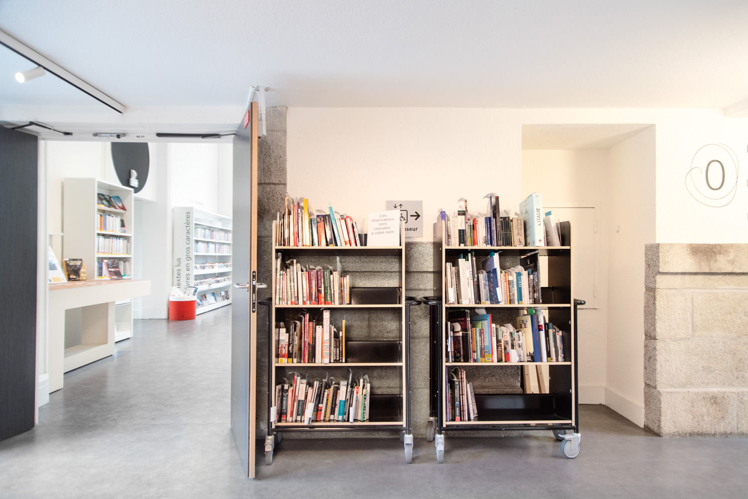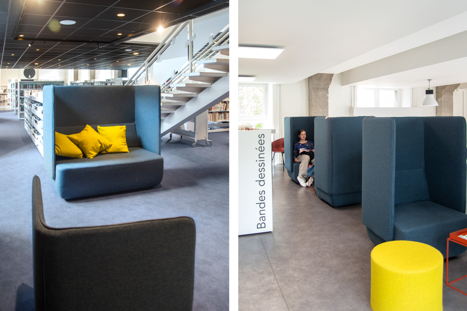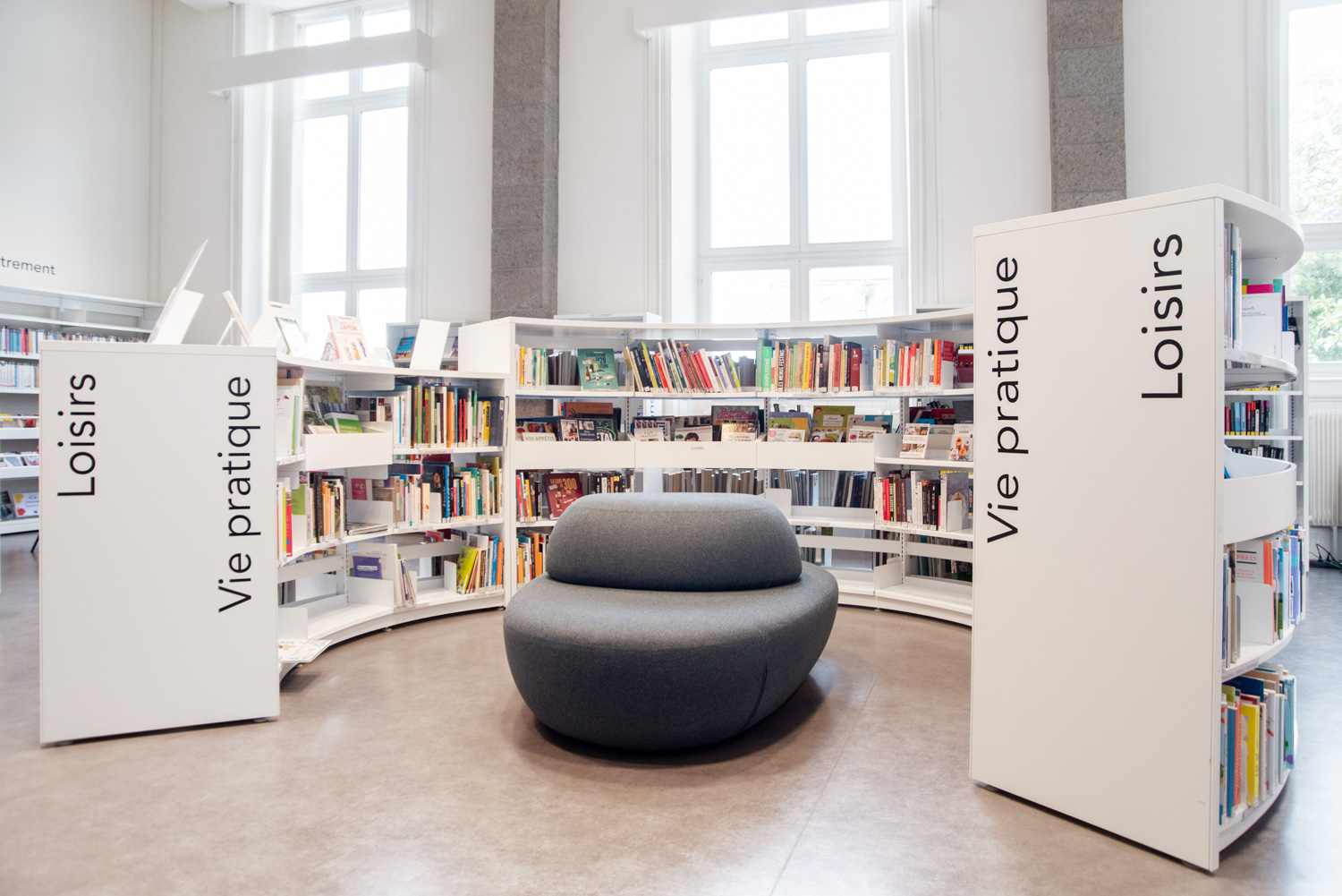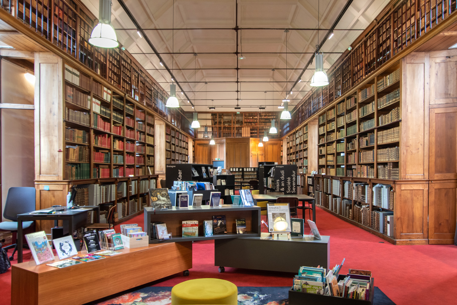 Après 18 mois de travaux, la Médiathèque André Malraux de Saint Brieuc a réouvert en décembre 2019. Avec 55 000 ouvrages en accès libres (sur 3 niveaux plus d’espace de circulation et de convivialité dans les nouveaux espaces. Le mobilier de la gamme London est décliné sur l’ensemble du bâtiment avec un module cintré au rez-de-chaussée. A faire, la visite de la salle patrimoniale du 2eme étage : rayonnage noir sol rouge et ancien rayonnage en chêne toute hauteur (magnifique).