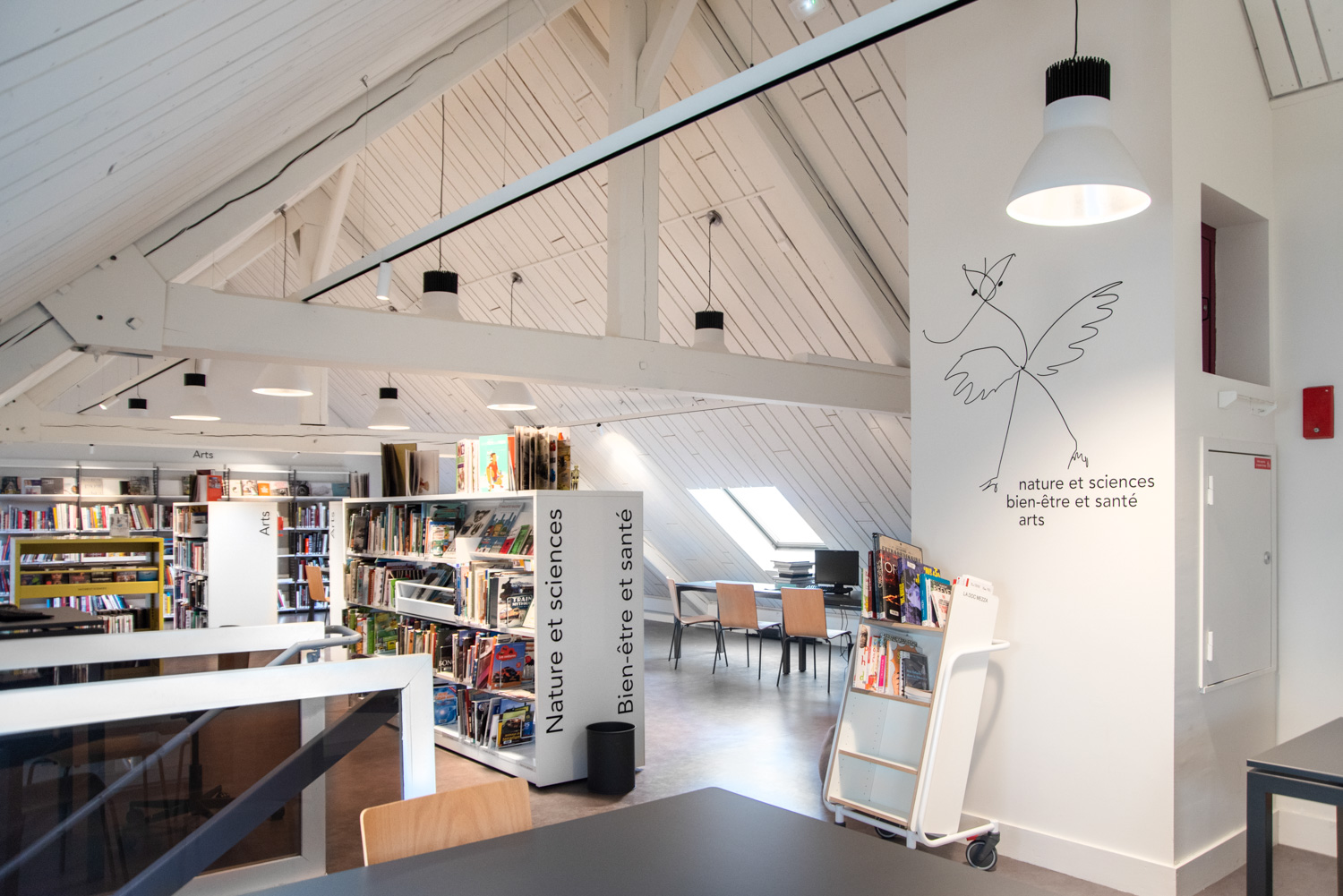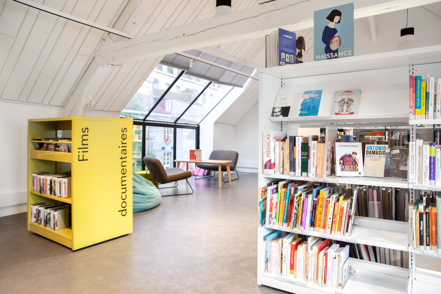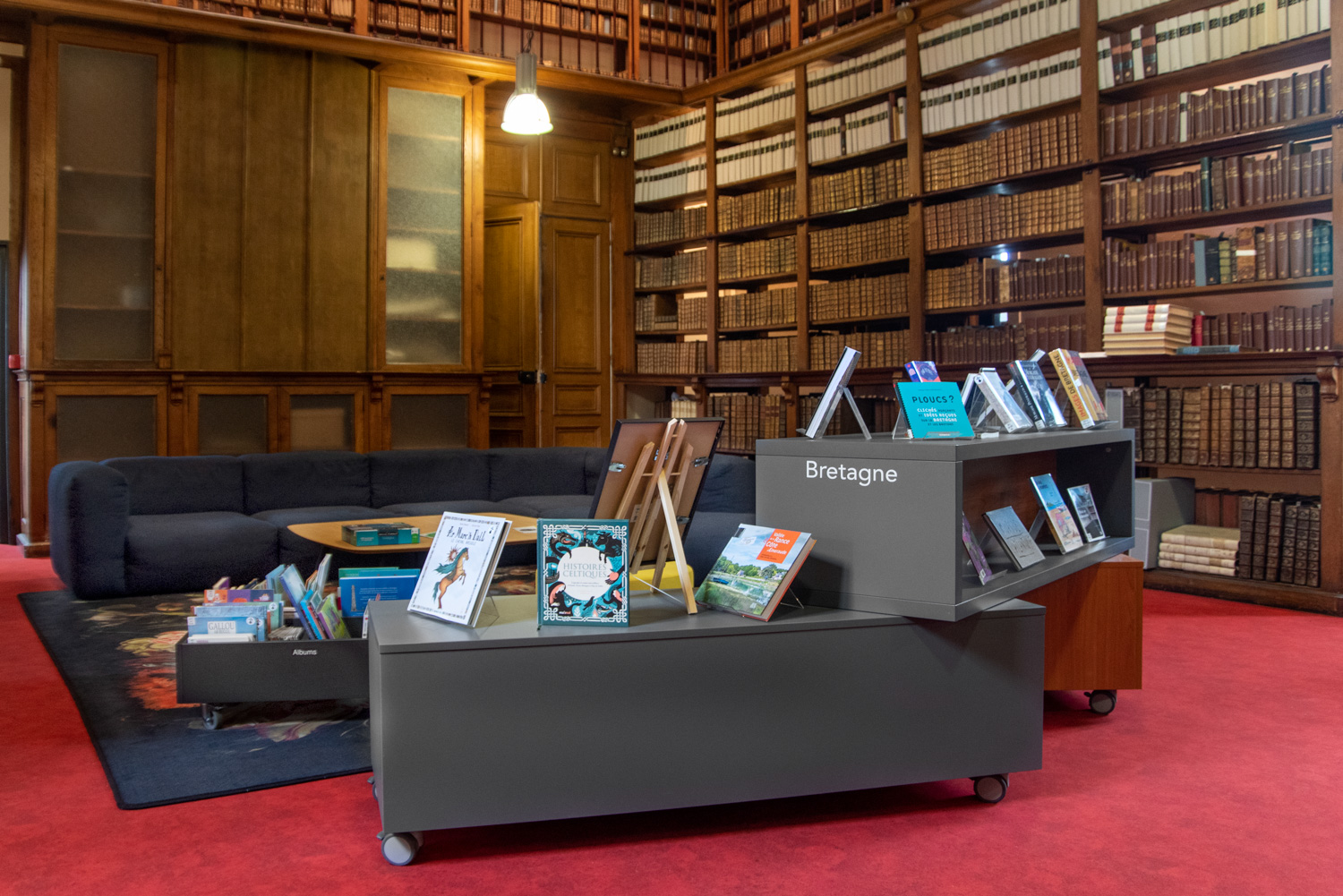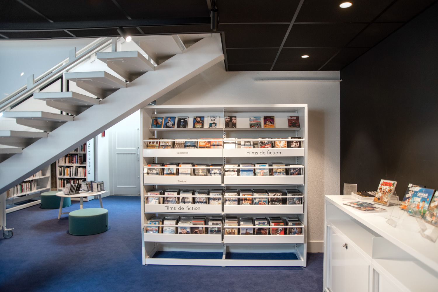 Après 18 mois de travaux, la Médiathèque André Malraux de Saint Brieuc a réouvert en décembre 2019. Avec 55 000 ouvrages en accès libres (sur 3 niveaux plus d’espace de circulation et de convivialité dans les nouveaux espaces. Le mobilier de la gamme London est décliné sur l’ensemble du bâtiment avec un module cintré au rez-de-chaussée. A faire, la visite de la salle patrimoniale du 2eme étage : rayonnage noir sol rouge et ancien rayonnage en chêne toute hauteur (magnifique).