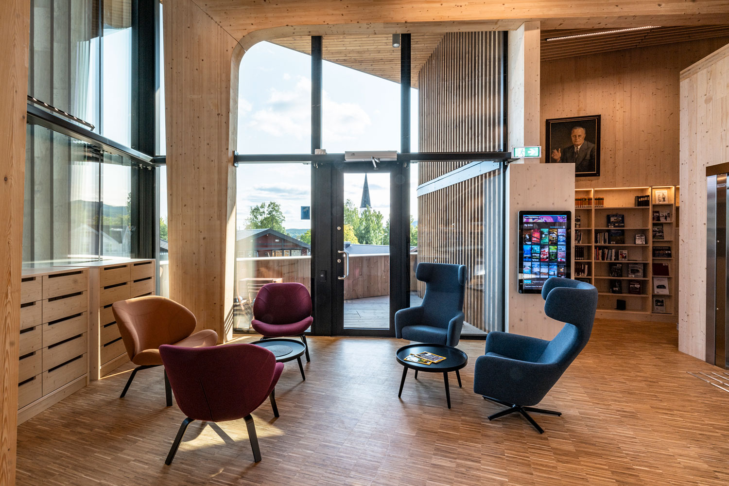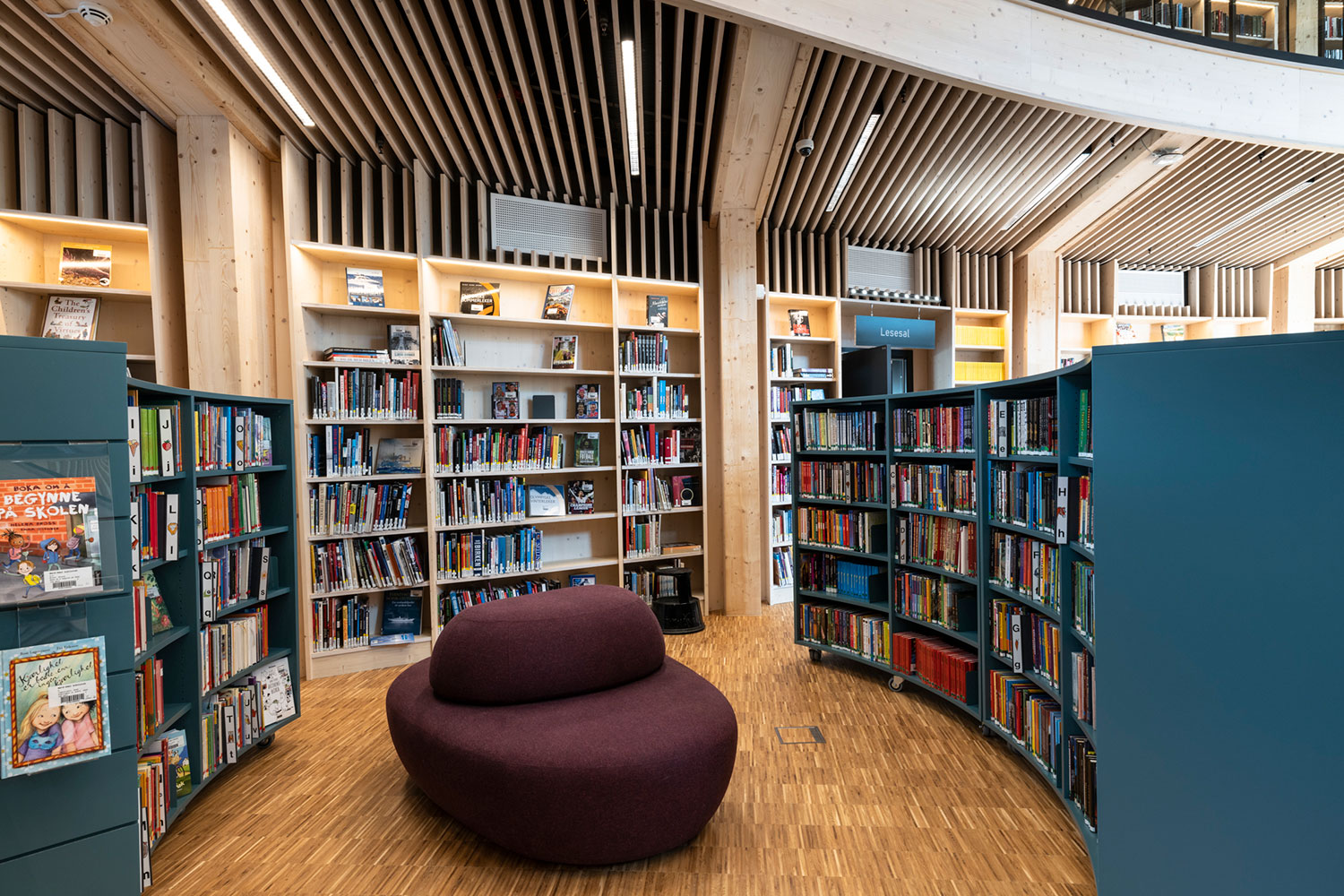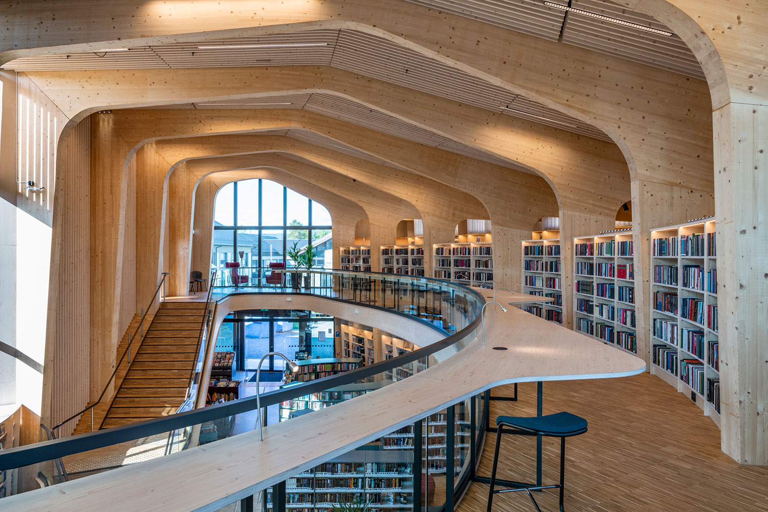 Le bâtiment spectaculaire, de forme organique, est devenu un aimant pour les amateurs de littérature et d’architecture. La structure de l’édifice est en bois massif avec un atrium ouvert au centre.