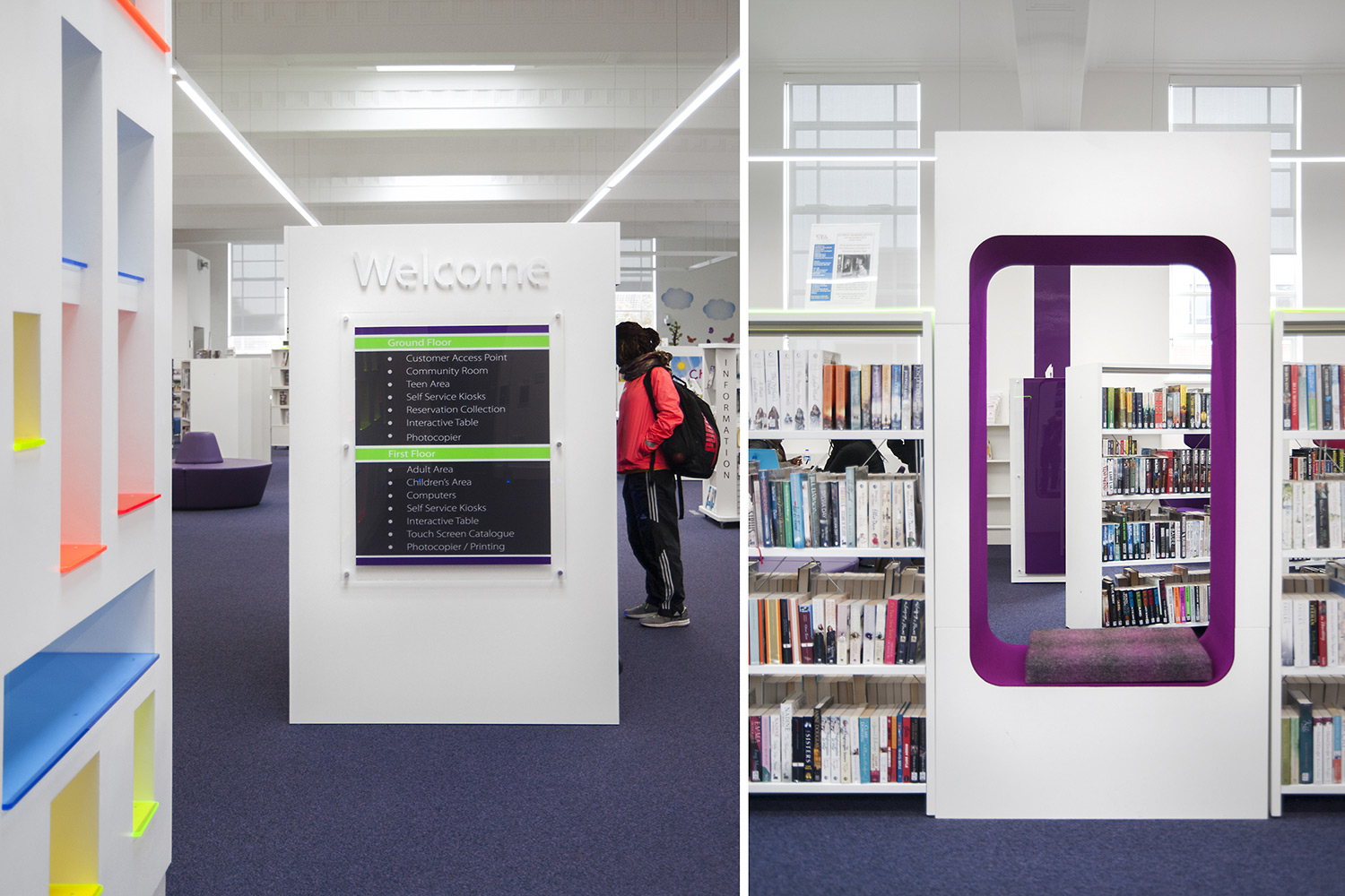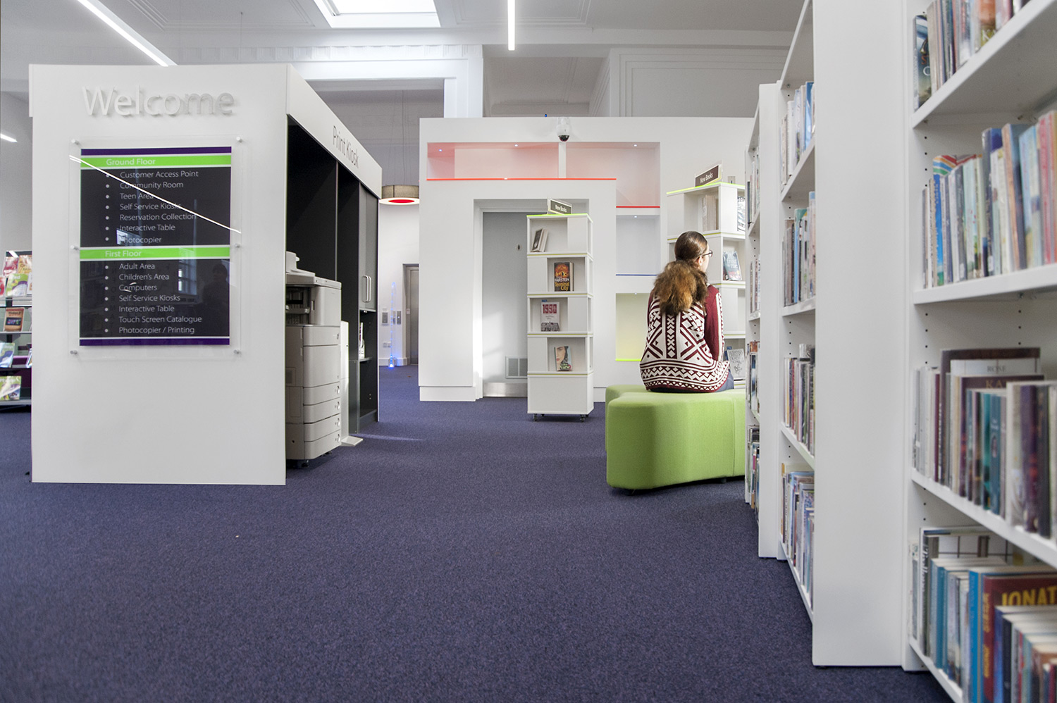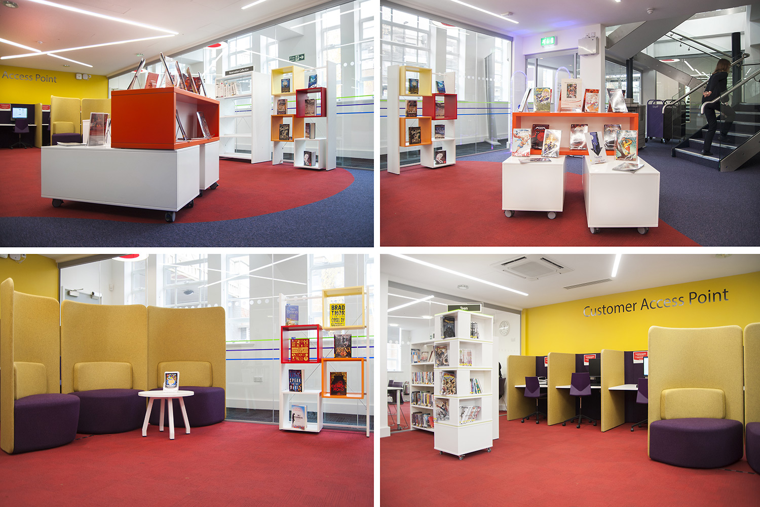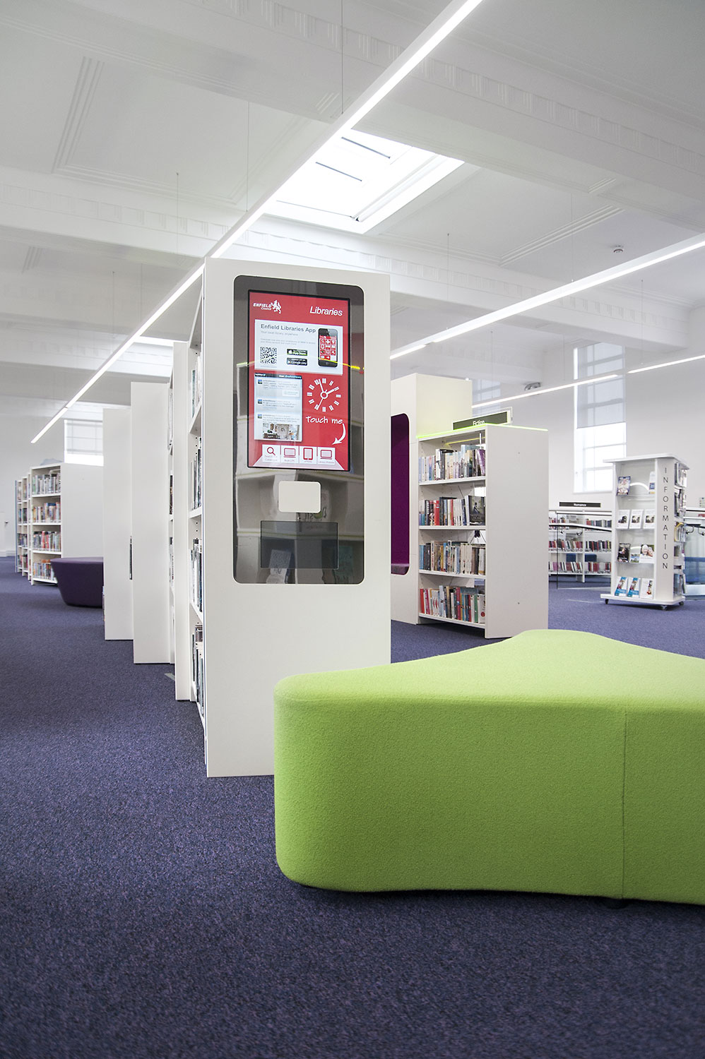 Produits utilisés à la Bibliothèque publique de Palmers Green, London, Royaume-Uni