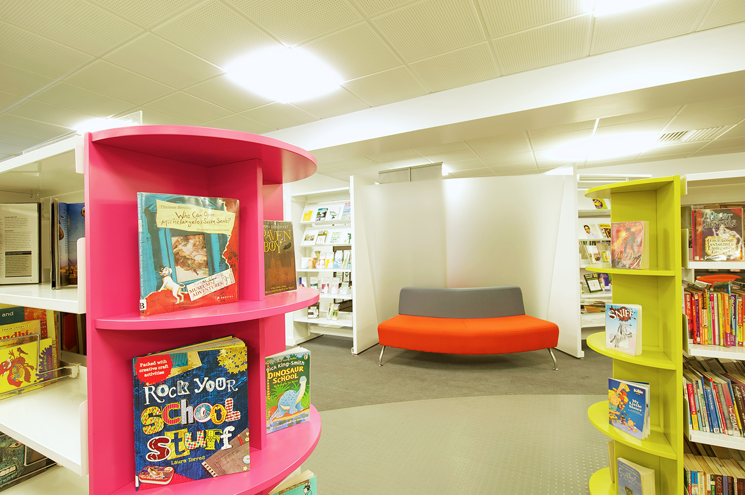 Ces quatres bibliothèques sont équipées avec le système «classic» agrémentées de mobiliers design reliant sur les 4 lieux un fil conducteur en termes de colorimétrie et d’identité.