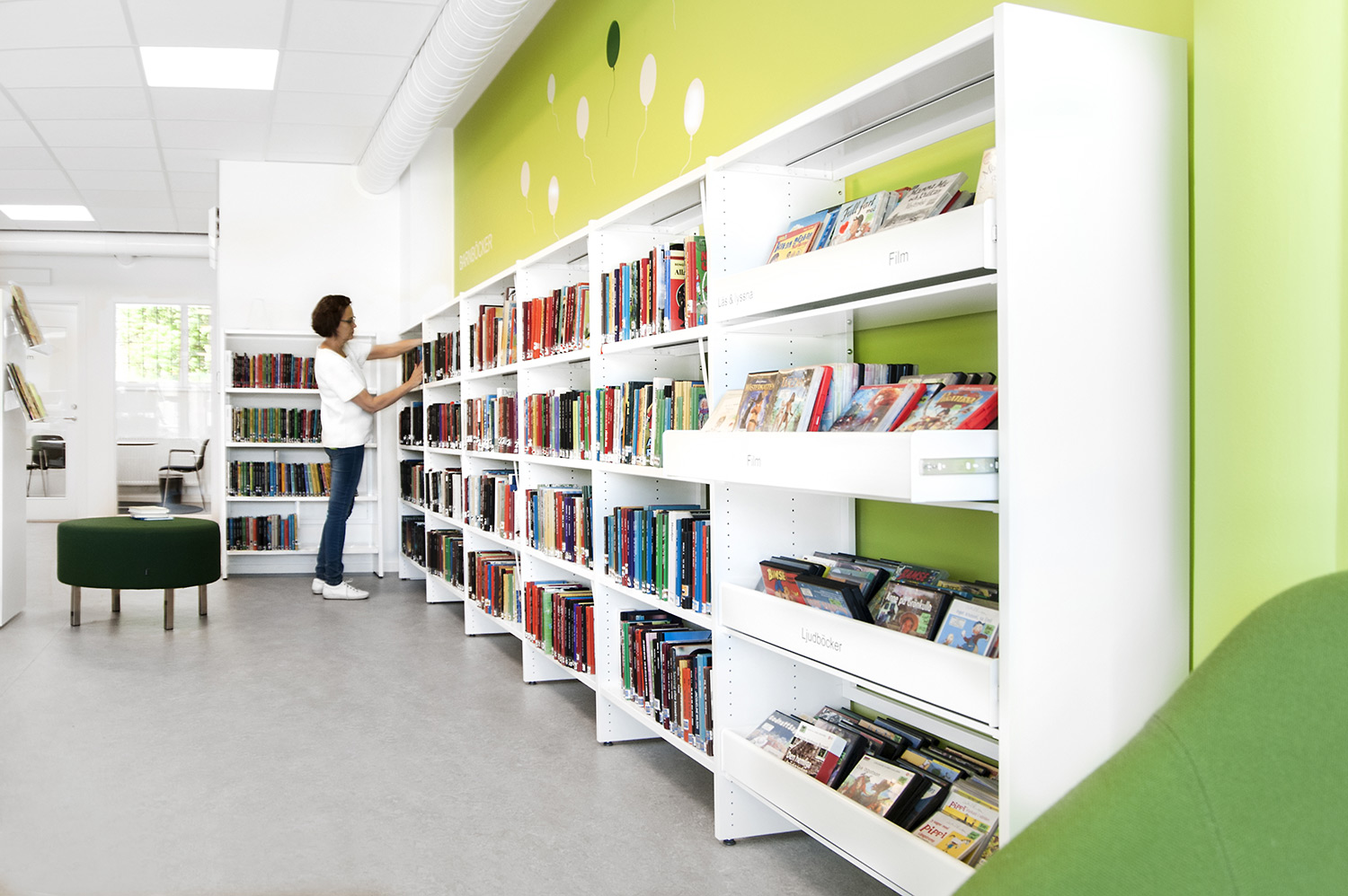 La bibliothèque de Kallhäll est la première bibliothèque ouverte et en libre-service de la municipalité de Järfälla
