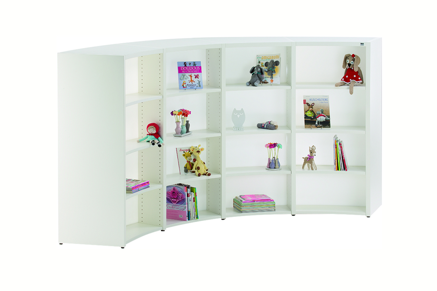Polyvalence et plaisir sont les termes qui qualifient le mieux le rayonnage Inform courbe.