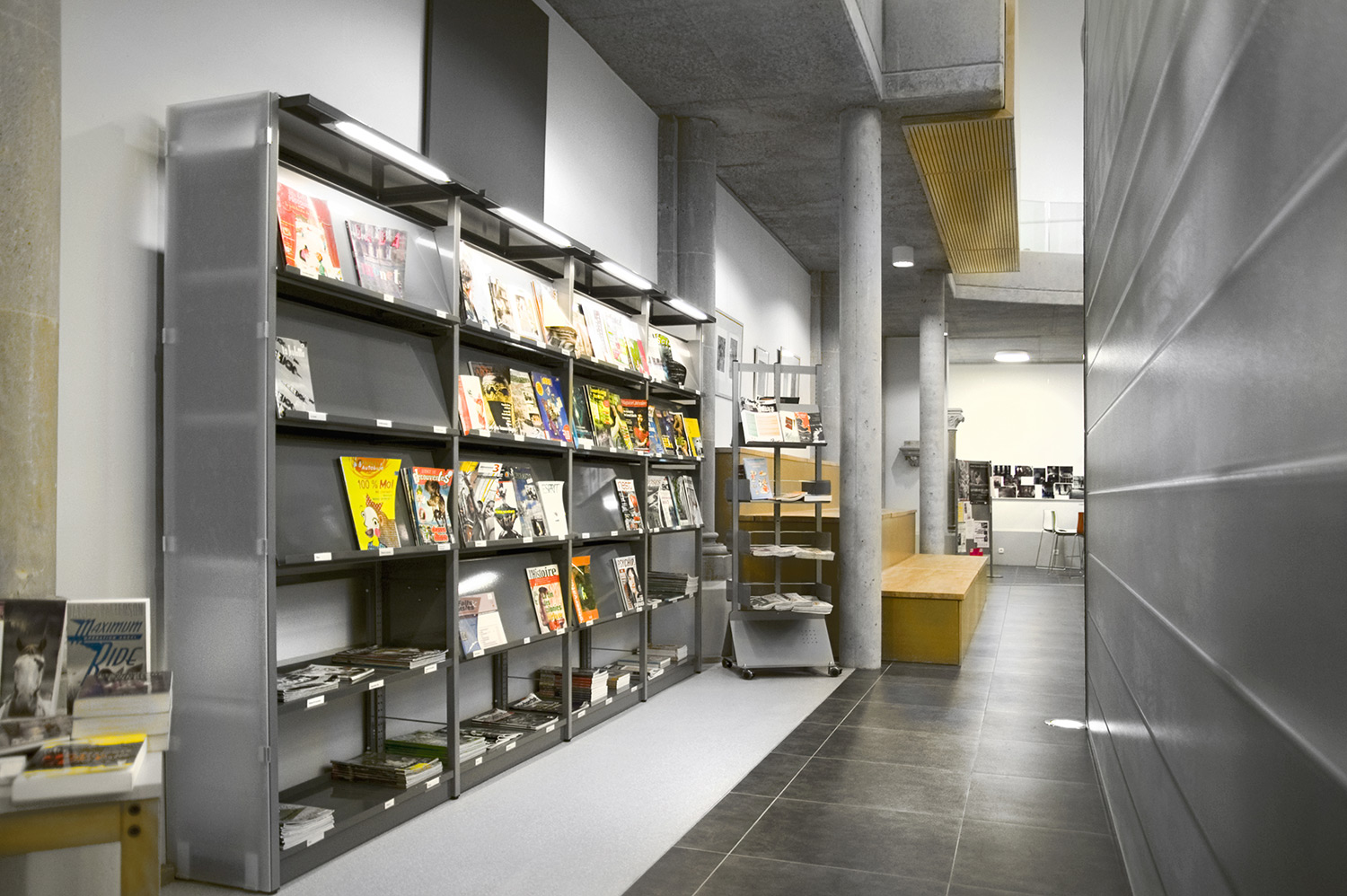 Ce système de rayonnage robuste monté sur une structure tubulaire carrée de 30 X 30 mm convient parfaitement aux grandes bibliothèques ainsi qu’aux bibliothèques publiques et scolaires. Les montants métalliques du système Uniflex sont perforés côtés intérieurs tous les 25 mm pour permettre un assemblage et un réglage faciles sans outillage. Les modules sont équipés d’un profilé en C multifonctionnel, pour une insertion facile des socles et tablettes de couverture.