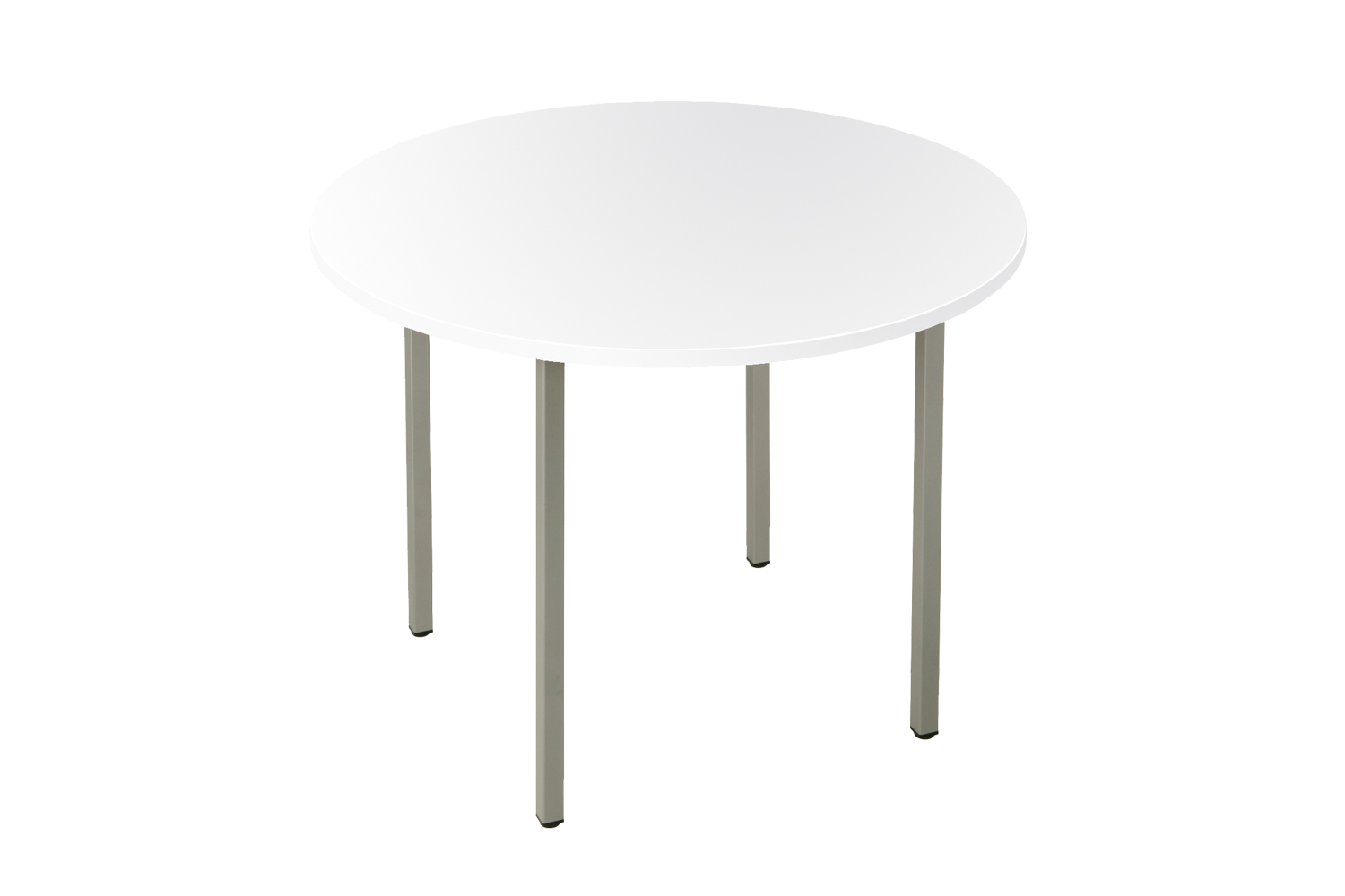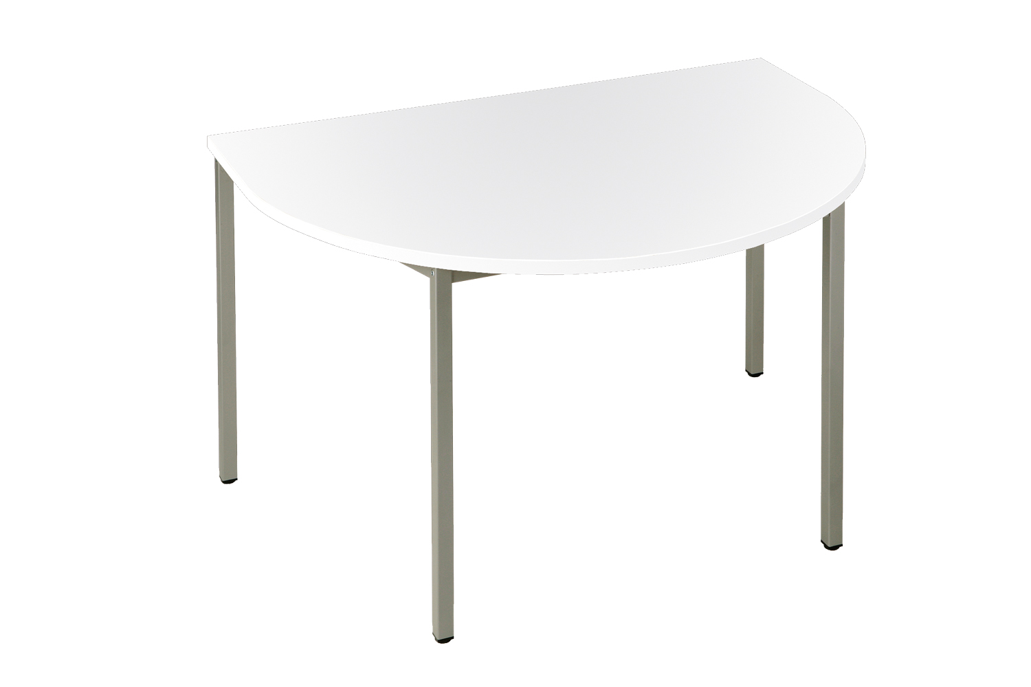 Les tables sont disponibles en trois versions différentes : rectangulaire, ronde et demi-ronde. Le piètement métallique à 4 pieds est disponible en section carrée de 30 x 30 mm.