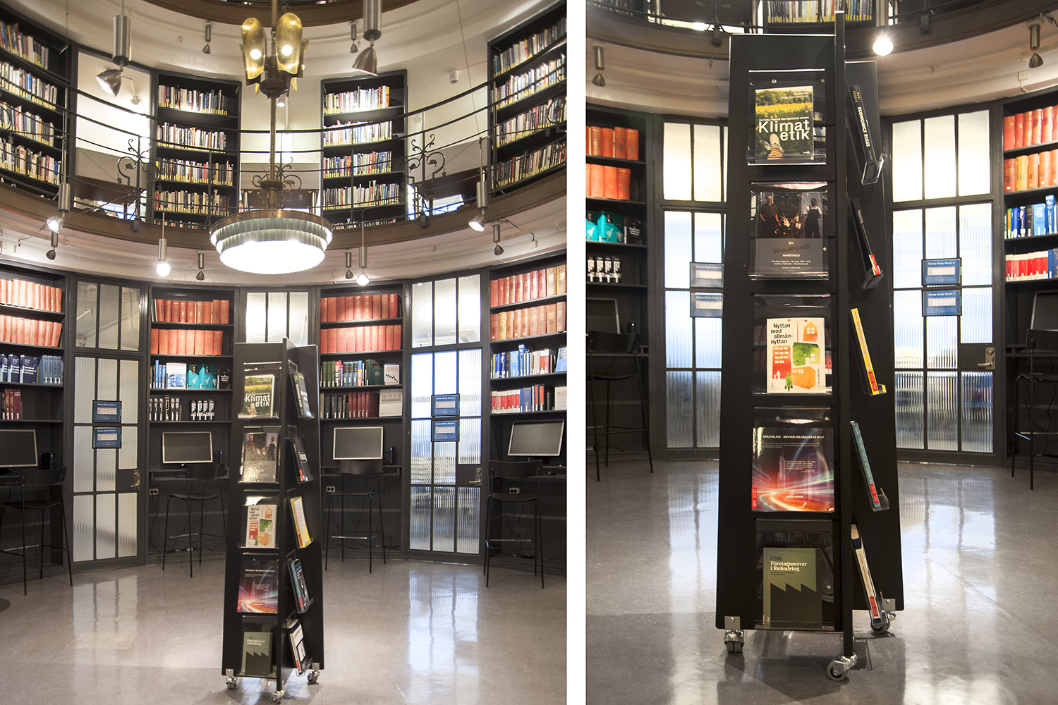 Une tour (cubique) pour la présentation frontale des livres, des revues, etc.
