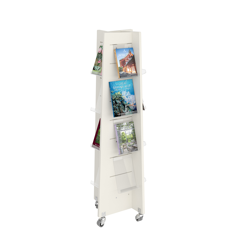 Fournie avec supports de présentation en acrylique, jeu de roulettes et pieds réglables.